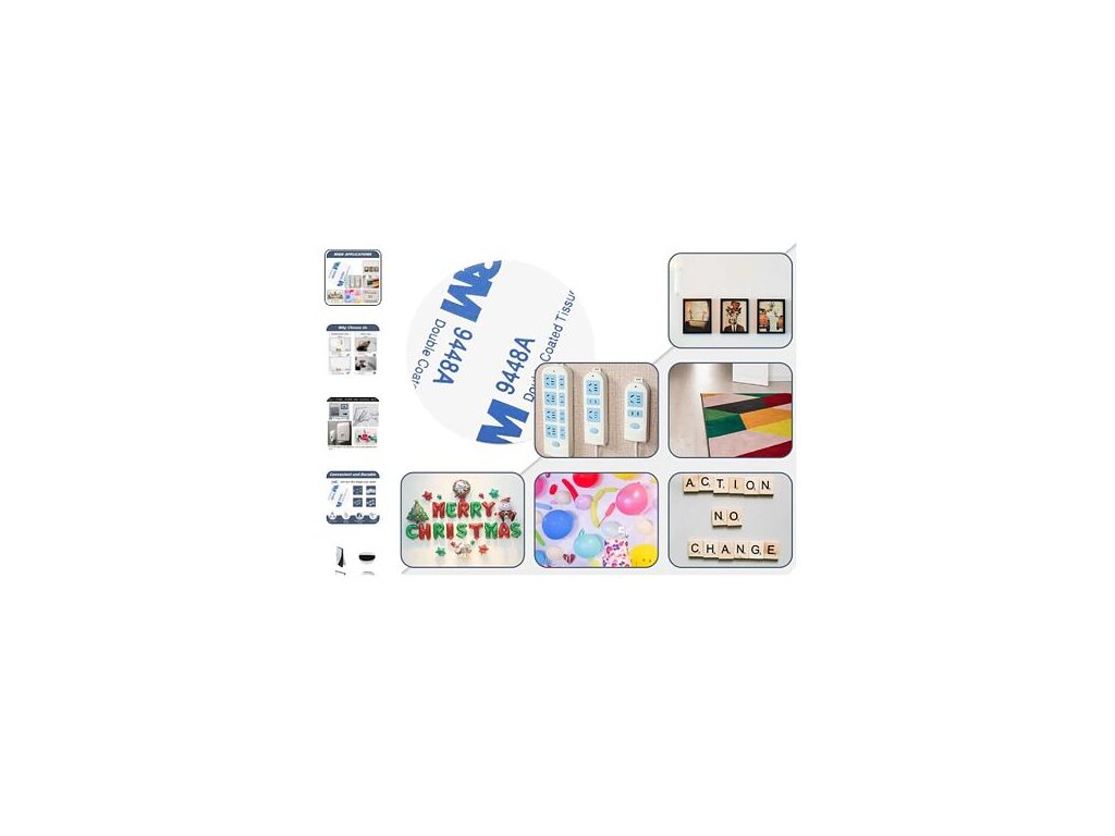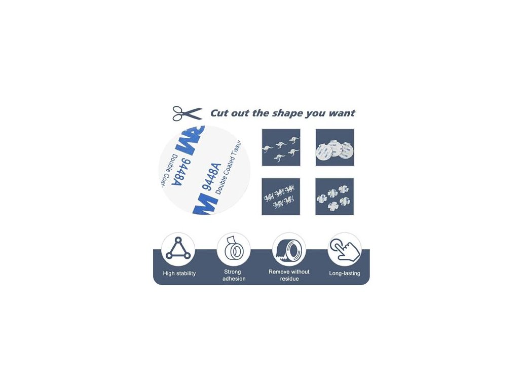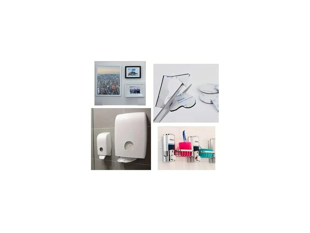 Sada 3M Fix Plates obsahu 4 kusy oboustranných pěnových samolepek různých tvarů pro montáž drobných věcí na hladkém povrchu jako sklo, kov, dlažba, dlaždice, latexová barva apod. Akrylové pásky o síle 1,5 mm využijete v domácnosti či v autě. Jejich výhoda je rychlá montáž, dobrá přilnavost a eliminace viditelných spojovacích prvků jako jsou šrouby či nýty. Samolepky také můžete zkrátit nůžkami dle potřeby. Balení obsahuje samolepky o rozměrech: 1x .... 25 x 25 mm 1x .... 55 x 42 mm 1x .... průměr 40 mm 1x .... průměr 50 mm Použití: - Důkladně očistěte a osušte povrch. - Odtrhněte ochrannou fólii a přilepte pásku k povrchu. - Odstraňte druhý bezpečnostní papír. - Nalepte na něj vybranou položku. - Při použití těžších věcí použijte více samolepek.Doplňkové parametry