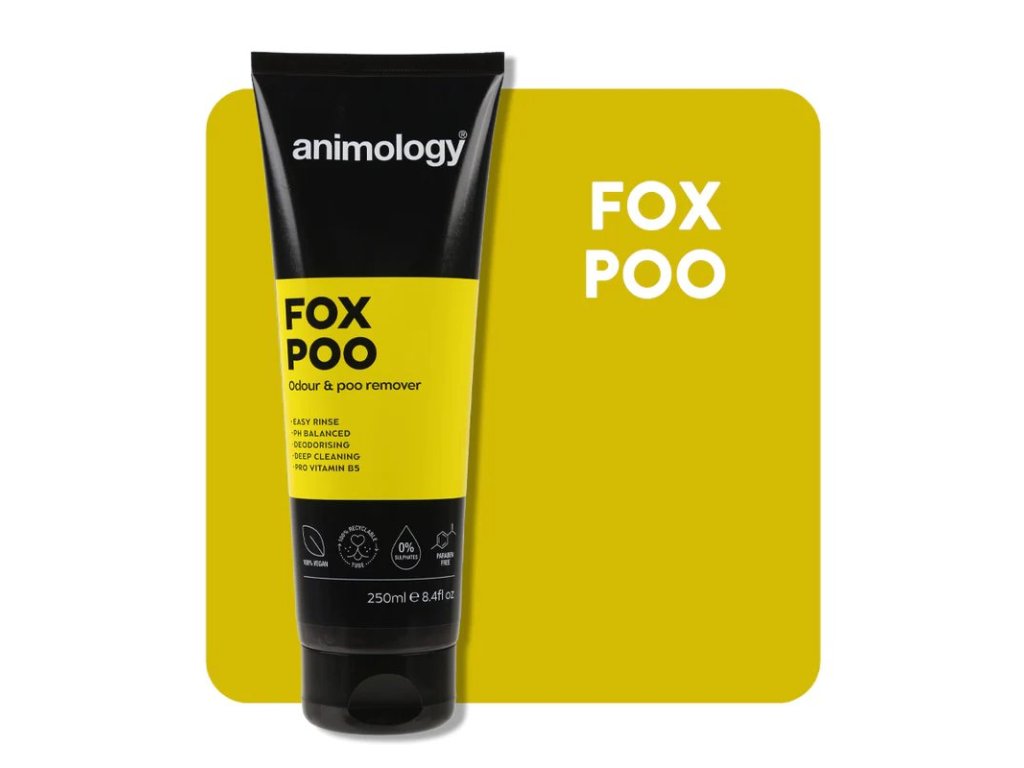 Odstranit zápach po exkrementech není snadné. Záchranou je tento speciální šampon Animology Fox Poo, který odstraní i intenzivní zápach jakýchkoliv exkrementů (např. lišky, dobytka, jezevce, kachny, kočky…). Šampon dokáže jednoduše odstranit všechny mastné a tukové usazeniny. Obsahuje sloučeninu čtyř speciálních látek, které dokáží odstraňovat zápach mnohem efektivněji než běžné deodorační šampony. Šampon je jemně pěnivý pro rychlejší opláchnutí srsti, která je pak čistá a hebká.