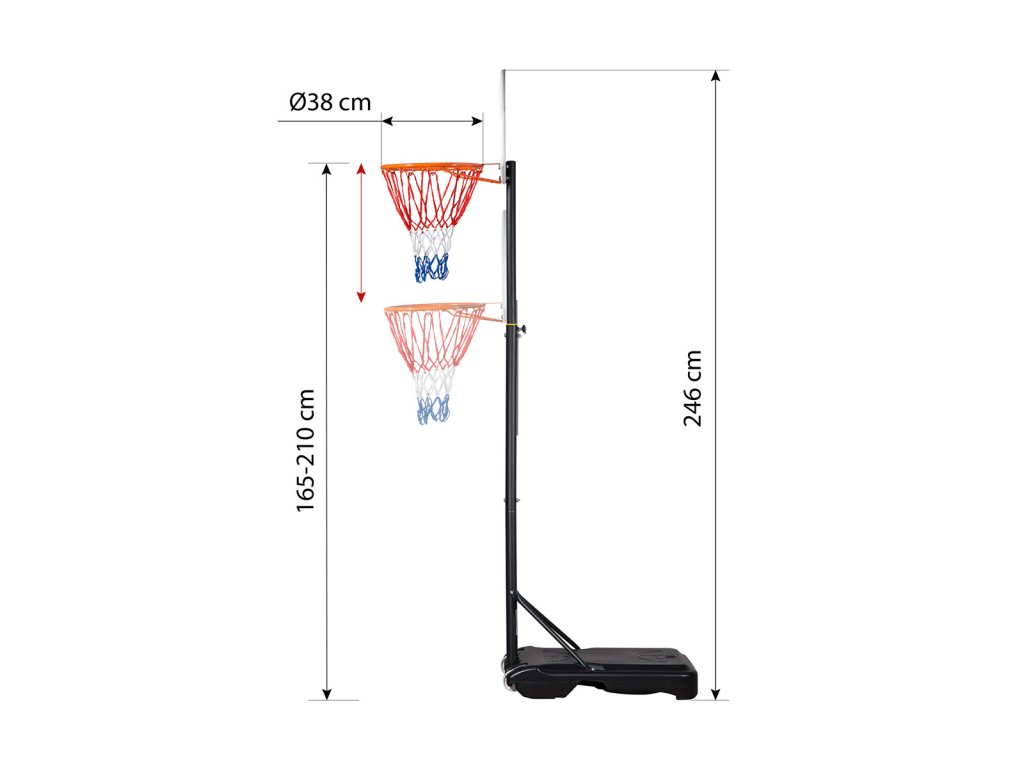 - Výška obruče: 1,65 - 2,1 m
