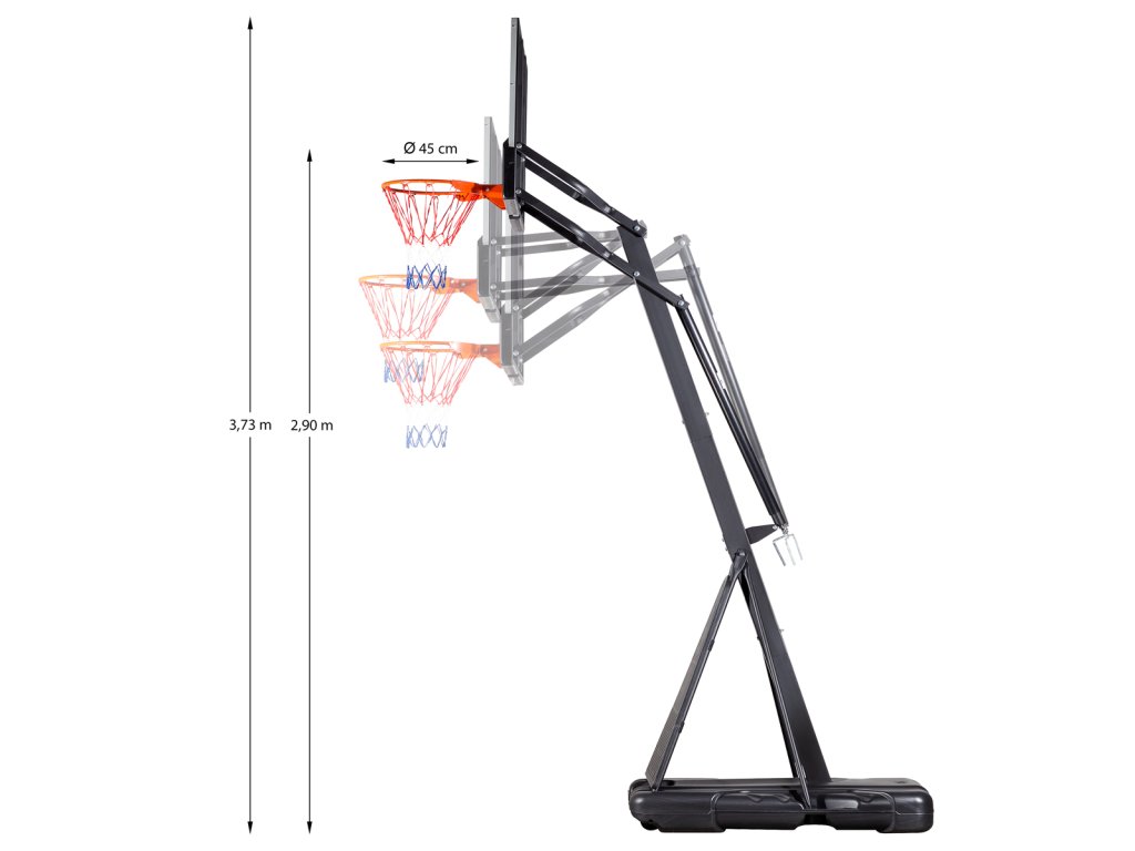 Díky možnosti nastavení výšky se koš dokonale přizpůsobí vašim potřebám. Ať už jste začátečník, nebo zkušený šampion, náš koš vám poskytne dokonalé nastavení pro maximální využití vašeho potenciálu. Změna výšky se provádí jednoduchým otáčením kliky. Výšku obruče lze plynule nastavit v rozsahu od 2,24 do 3,05 metru.