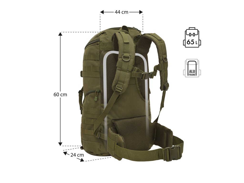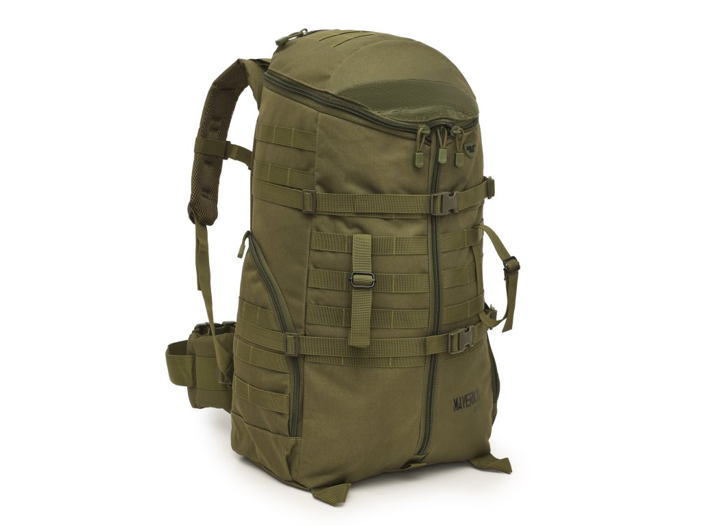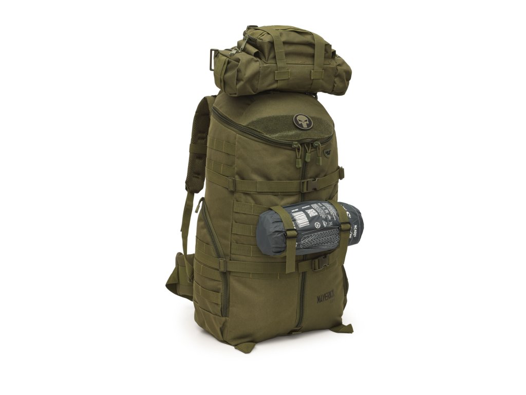 Maverick je vyroben z pevného 100% polyesteru pokrytého PVC vrstvou, která poskytuje velmi dobrou odolnost proti oděru, vlhkosti a intenzivnímu používání v náročných terénních podmínkách. Uvnitř konstrukce se nachází hliníkový rám, který stabilizuje batoh a zajišťuje ergonomické rozložení hmotnosti, čímž odlehčuje páteř a zvyšuje pohodlí při nošení – zejména při dlouhých pochodech s plnou výbavou.