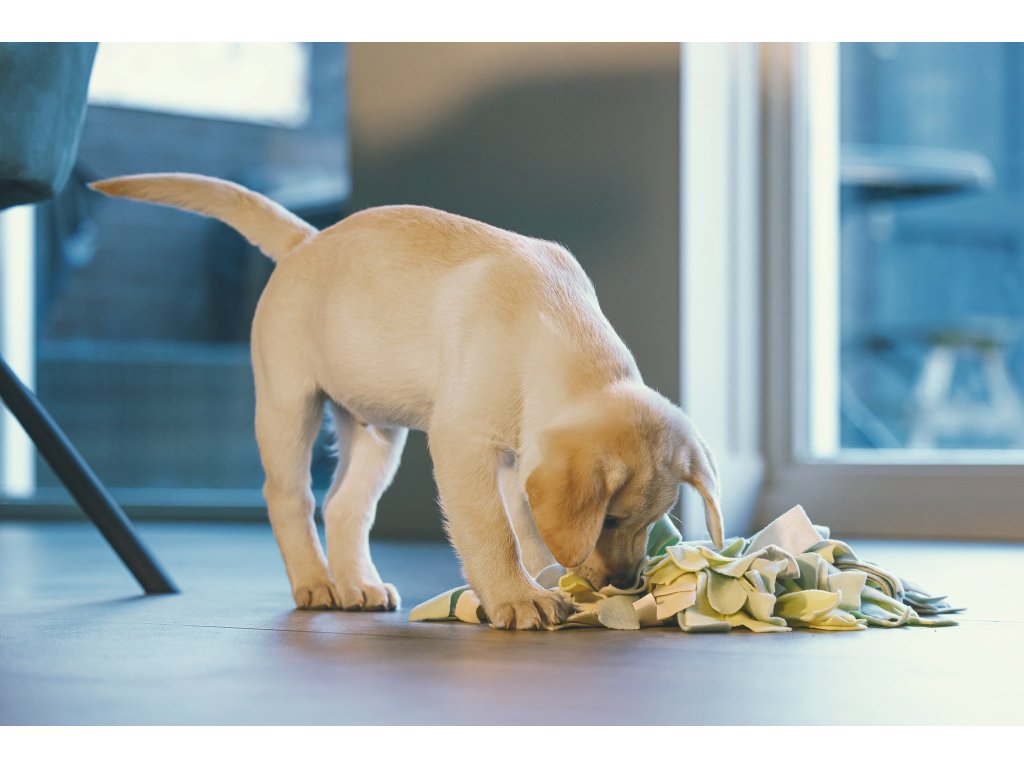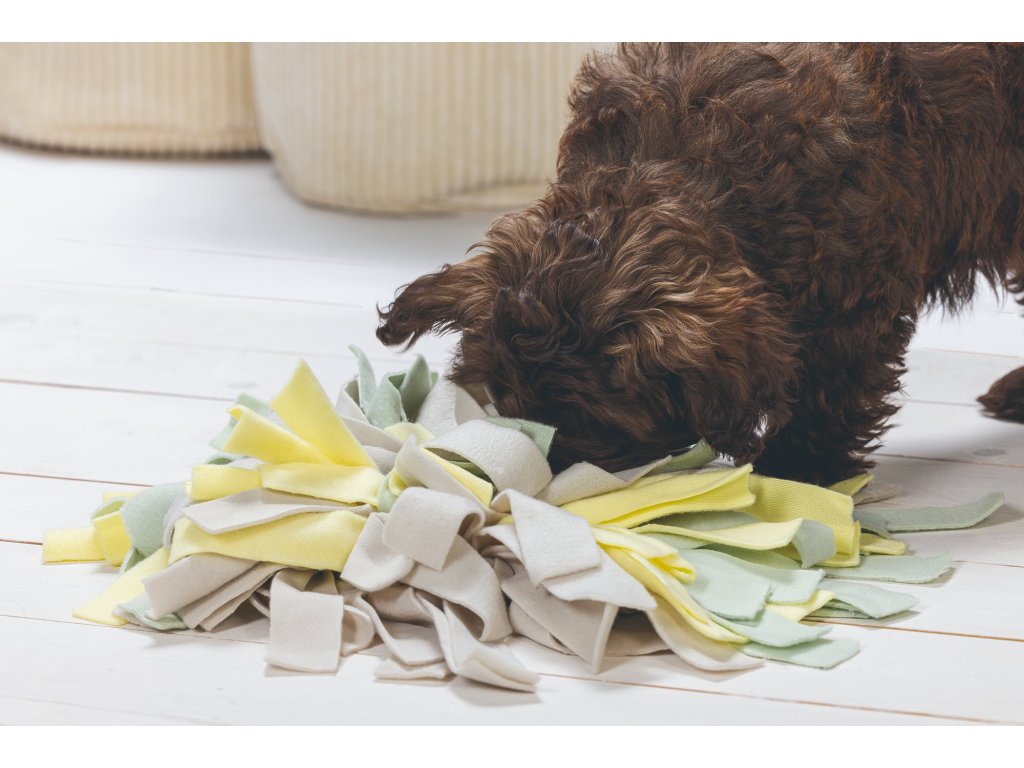 Kobereček nabízí Vašemu štěněti spoustu výzev. Lze ho použít k ukrytí psích sušenek nebo jiných pamlsků. Podložka se skládá z různých barevných provázků, krátkých i dlouhých. Díky této struktuře bude muset štěňátko vynaložit velké úsilí, aby pamlsky našlo, což ho smysluplně zaměstná na dlouhou dobu. Kobereček je vyroben z měkkého flísu, takže je pro čumáček Vašeho štěněte velice příjemný.