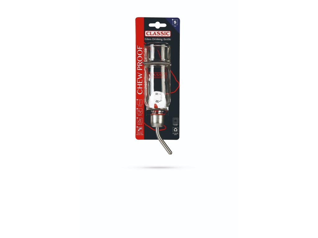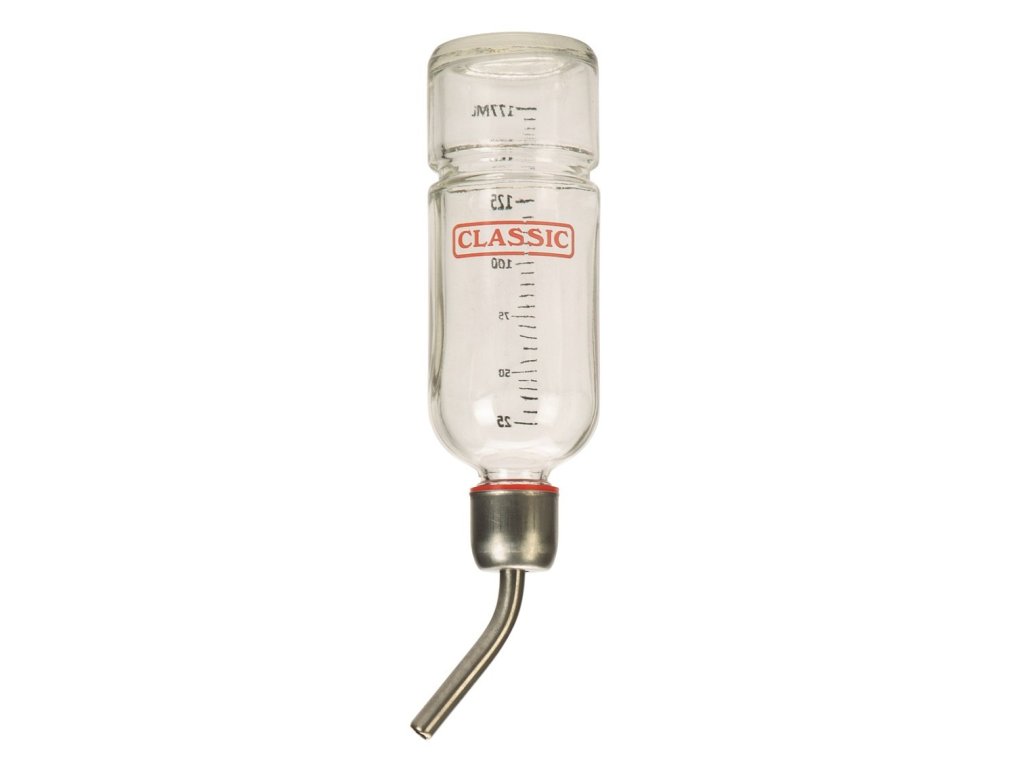 Klasická napáječka je vyrobená z tvrzeného skla a poskytuje Vašemu mazlíčkovi dostatek čerstvé vody. Jednoduše se připevní na klec pomocí upevňovacího drátku. Součástí je malá mrkvička, která Vám na první pohled ukáže, má-li Váš mazlíček dostatek vody. Nerezové pítko s kuličkou zabraňuje prosakování. Objem: 175 ml.