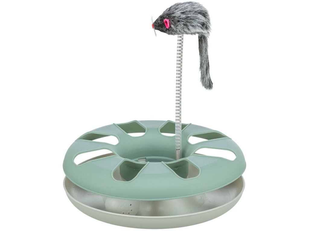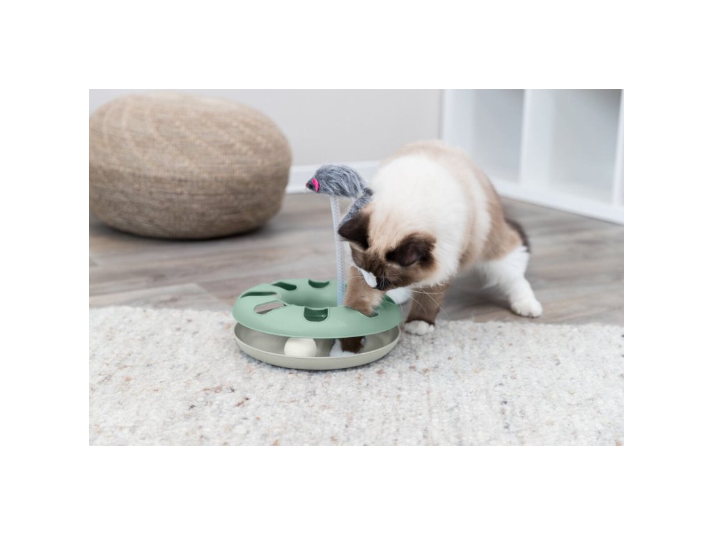 - aktivní hračka pro kočku, která tlapkou honí míček uzavřený v kruhu