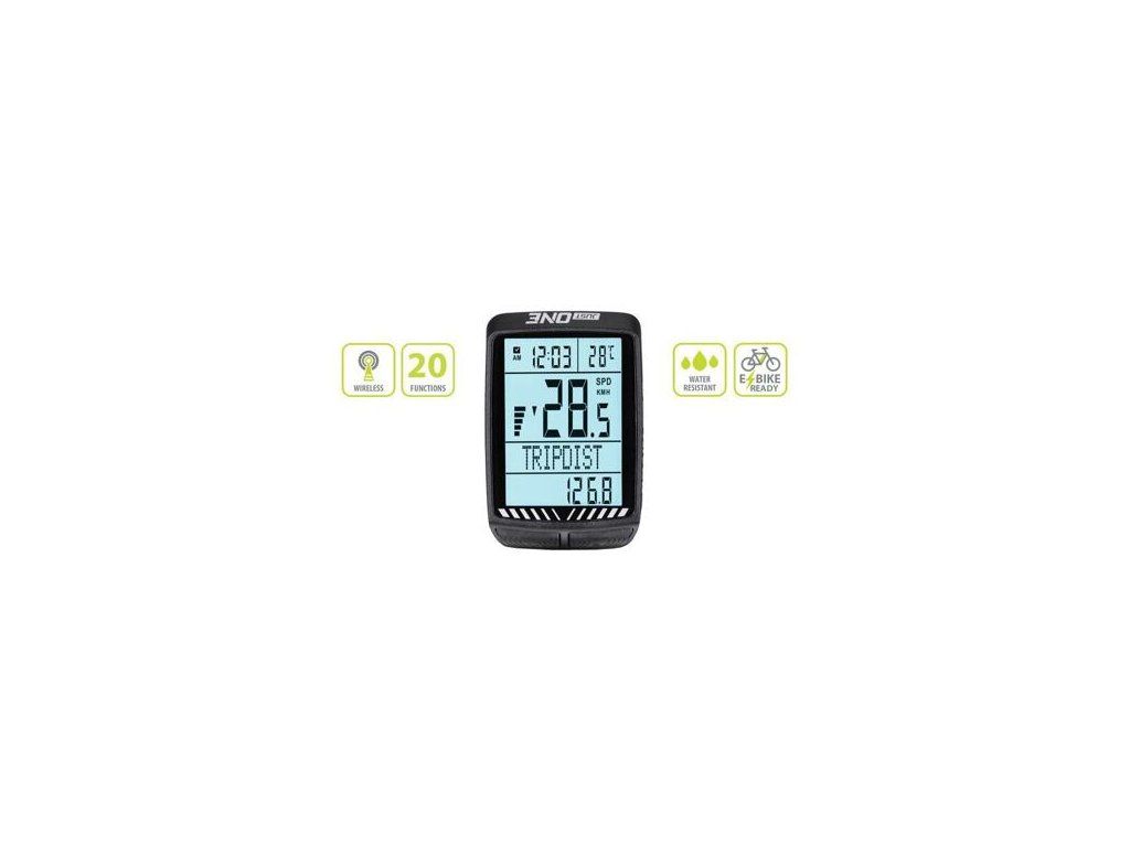 Bezdrátový cyklocomputer One Brain 20.0 ATS by měl patřit mezi základní vybavení každého cyklisty / cyklistky, kteří chtějí mít dokonalý přehled o svém výkonu. Tento moderní tachometr nabízí bezdrátový přenos dat (ATS), přehledný 4-segmentový displej s velkými číslicemi, snadnou montáž na řídítka nebo představec, má voděodolnou konstrukci a 20 funkcí: okamžitá rychlost, průměrná rychlost, maximální rychlost, porovnání okamžité a průměrné rychlosti, grafický indikátor rychlosti, denní ujetá vzdálenost, celková ujetá vzdálenost, ujetá vzdálenost nad/pod průměrnou rychlostí, denní doba jízdy, celková doba jízdy, spotřebované kalorie, hodiny (12/24 h), stopky, datum, teplota, paměť pro údaje za posledních 7 dnů, auto start/stop, automatická změna údaje, podsvícení displeje a vícejazyčné menu (EN, DE, FR, ES, IT).Doplňkové parametry
