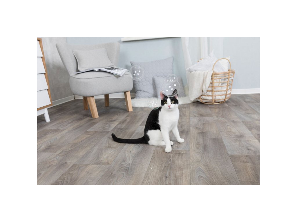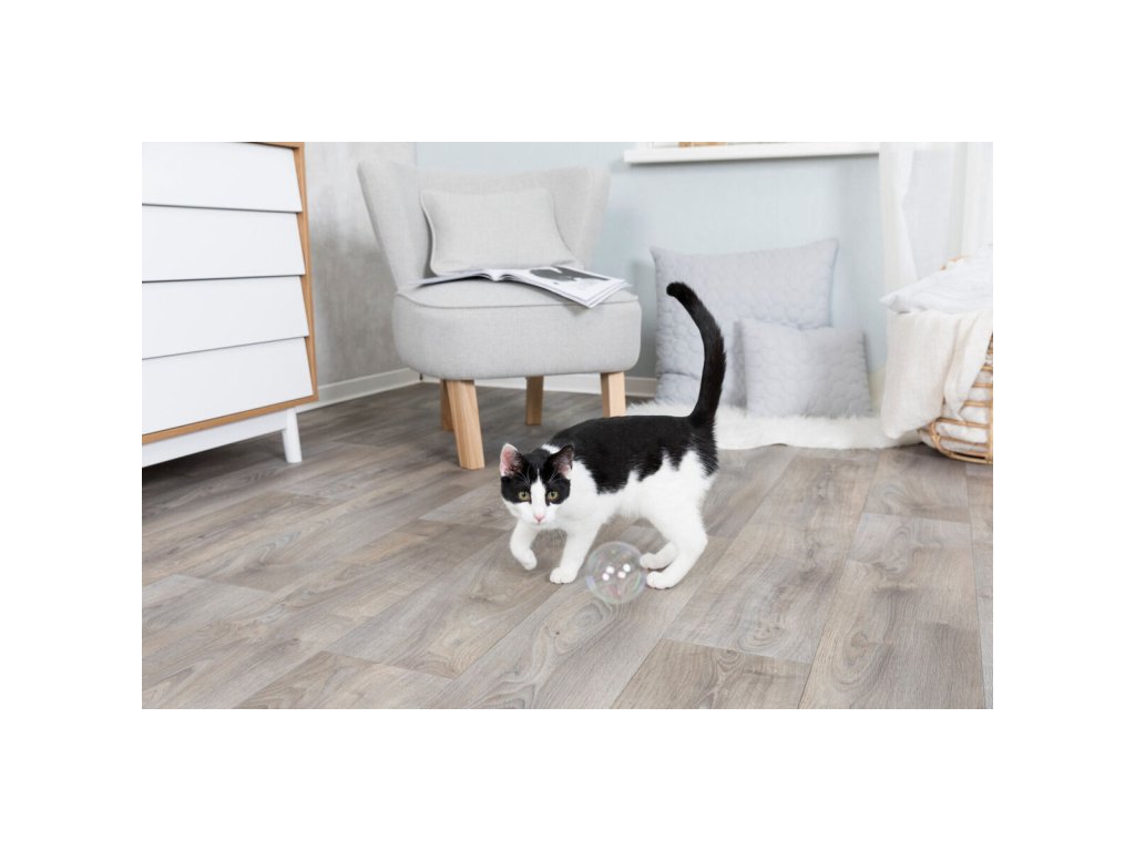 - kočka se snaží bublinky ulovit