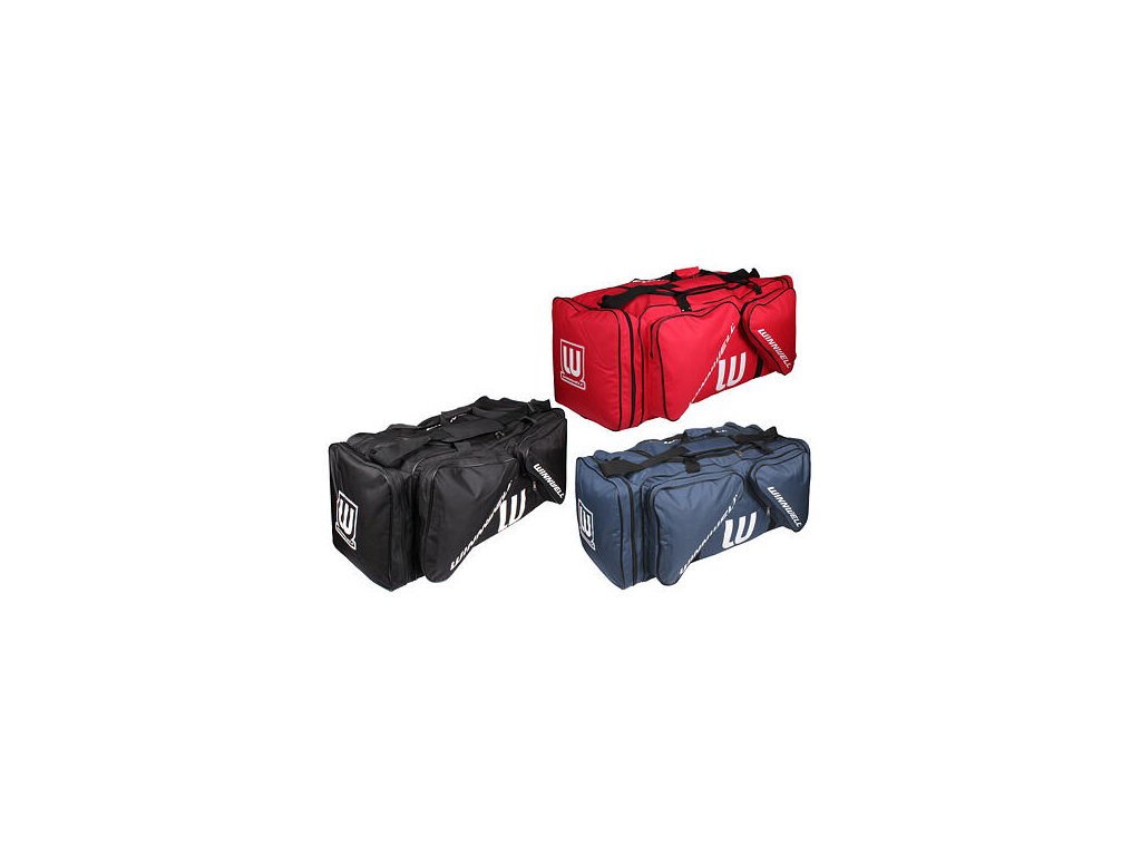 Nová prostorná hokejová taška bez koleček Winnwell Carry Bag. Jednoduchá taška na hokejovou výstroj s velkým úložným prostorem. Hokejová taška kanadského výrobce Winnwell za výbornou cenu. Na boční straně tašky jsou dvě kapsy určene pro uložení bruslí. Pro přenášení slouží široké popruhy. Lehká hokejová taška přes rameno s velkým logem Winnwell. Specifikace: vyrobena z pevného nylonu široké popruhy pro snadné přenášení přední boční kapsy otevírání horního panelu ve tvaru písmene U rozměry senior: 38" x 20" x 18" (96 x 50 x 45 cm) rozměry junior: 36" x 18" x 16" (91 x 46 x 40 cm)Doplňkové parametry