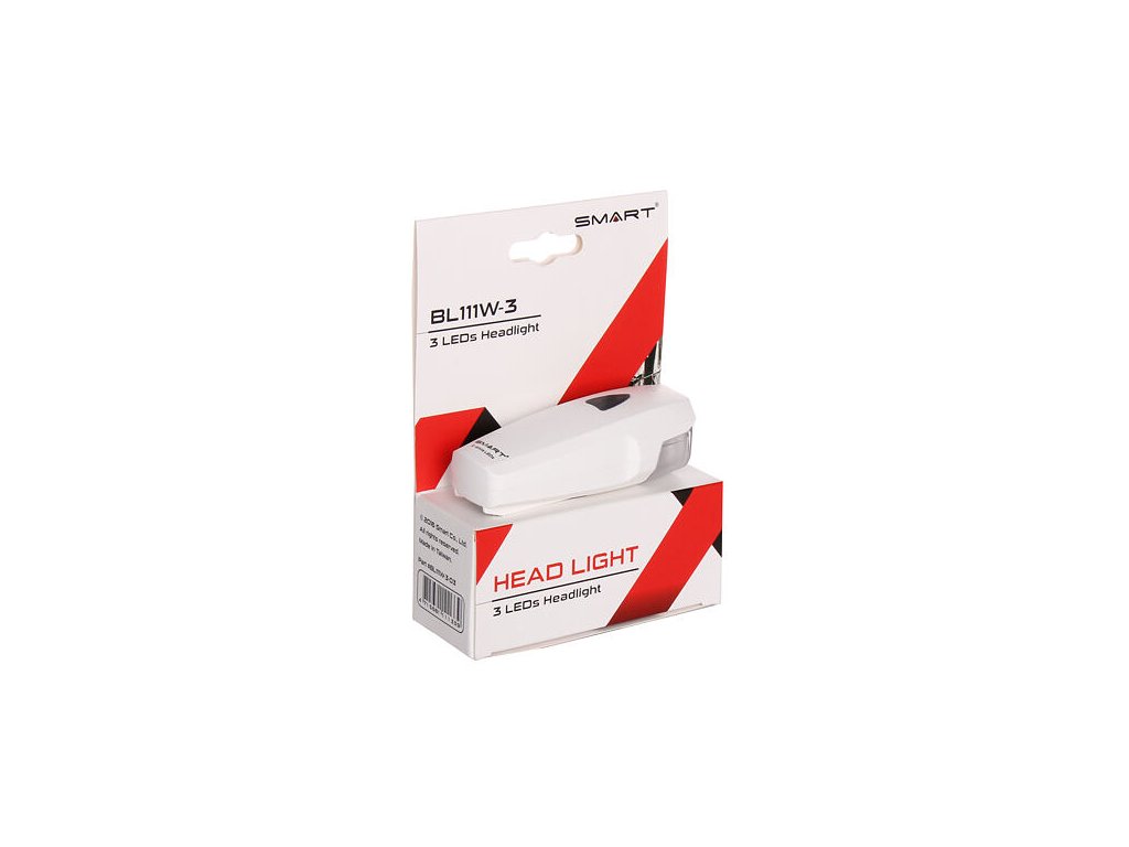 Die vordere Fahrradleuchte Smart 111W 3 LED ist eine wasserdichte Leuchte mit 3 NICHIA 1W LEDs, hergestellt aus langlebigem ABS-Kunststoff, die optische Linse besteht aus Polycarbonat. Das Licht bietet 2 Funktionen: Blinkmodus, wenn das Licht ca. 120 Betriebsstunden erreicht; Dauerlichtmodus, wenn die Leuchte ca. 70 Betriebsstunden erfüllt. Die LED-Leuchte Smart 111W 3 wird mit zwei AA-Batterien betrieben, die bereits im Lieferumfang enthalten sind (der Hersteller empfiehlt die Verwendung von Alkalibatterien). Ebenfalls im Lieferumfang enthalten ist der Radhalter BH-655, der universell für einen Durchmesser von 22,0 - 31,8 mm geeignet ist. Die Installation der Halterung selbst ist sehr einfach und kann von jedem durchgeführt werden. Sie müssen dann nur noch das Licht an- und ausschalten, indem Sie die Sicherung verwenden.Zusätzliche Parameter