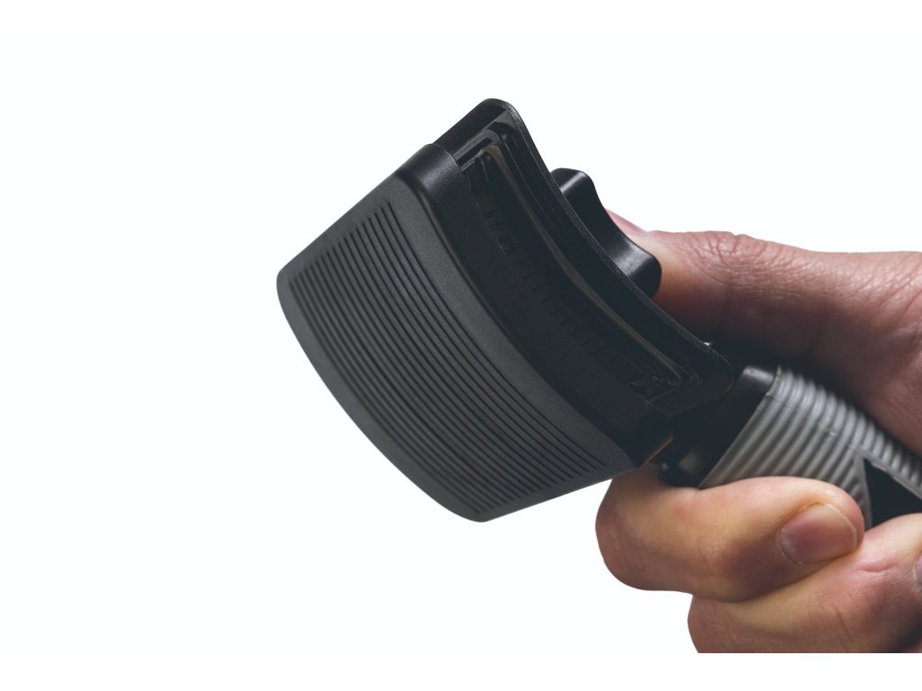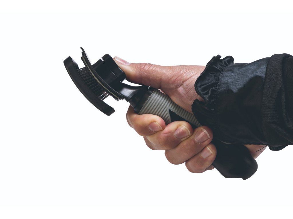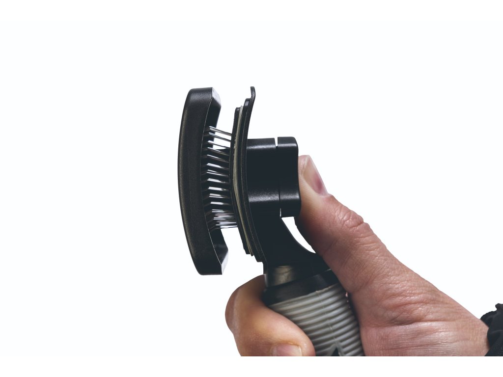 Das anschließende Entfernen von Haaren und Schmutz aus der Bürste ist super einfach! Durch Drücken des Knopfes an der Bürste „schaben“ das System Haare und Schmutz ab. Sie können sie ganz einfach vom Pinsel entfernen.
