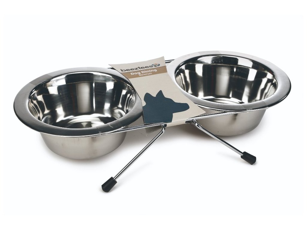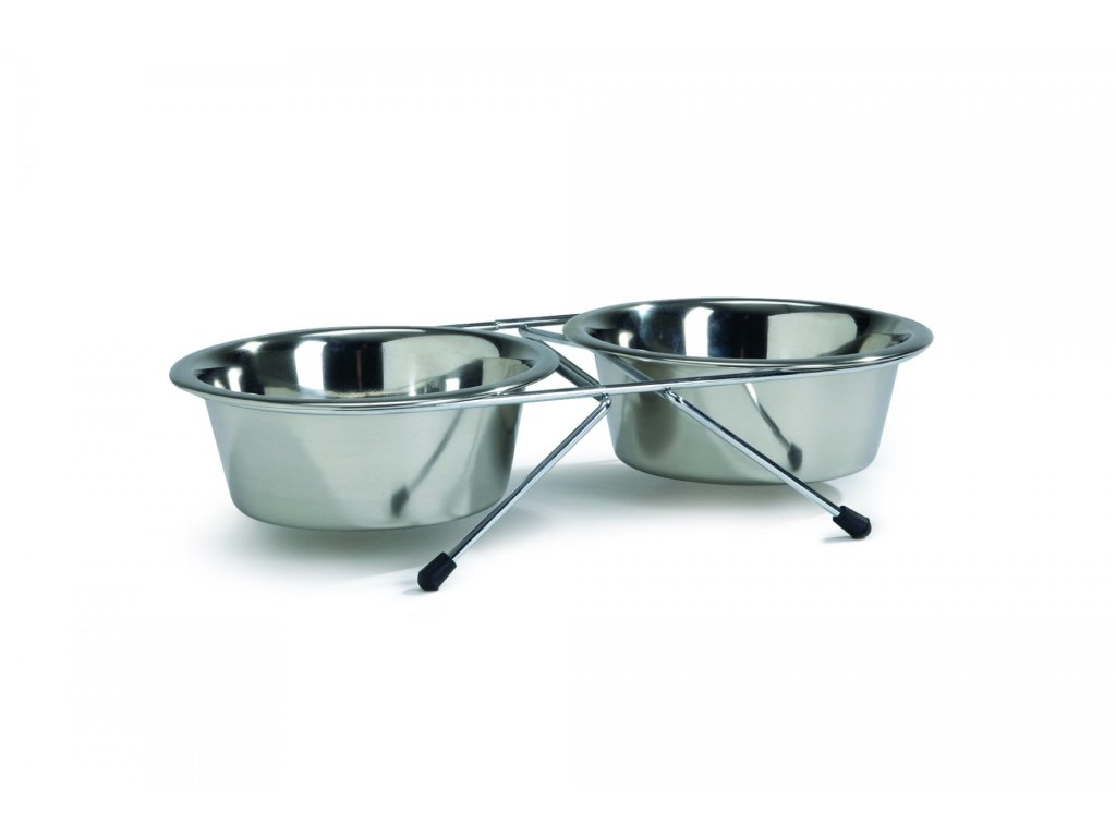Möchten Sie Futter und Wasser für Ihren Hund an einem Ort haben? Dann bietet der Beeztees Edelstahlständer mit zwei Edelstahlschüsseln die richtige Lösung. Diese Edelstahlschüsseln haben eine hochwertig glänzende Oberfläche, die ihnen ein stilvolles Aussehen verleiht. Der Ständer ist mit rutschfesten Enden ausgestattet, die ein mögliches Verrutschen und unerwünschtes Verkratzen des Bodens verhindern. Die Schalen können in der Spülmaschine gewaschen werden. Maße: Schüsseldurchmesser 13 cm – 0,45 l.