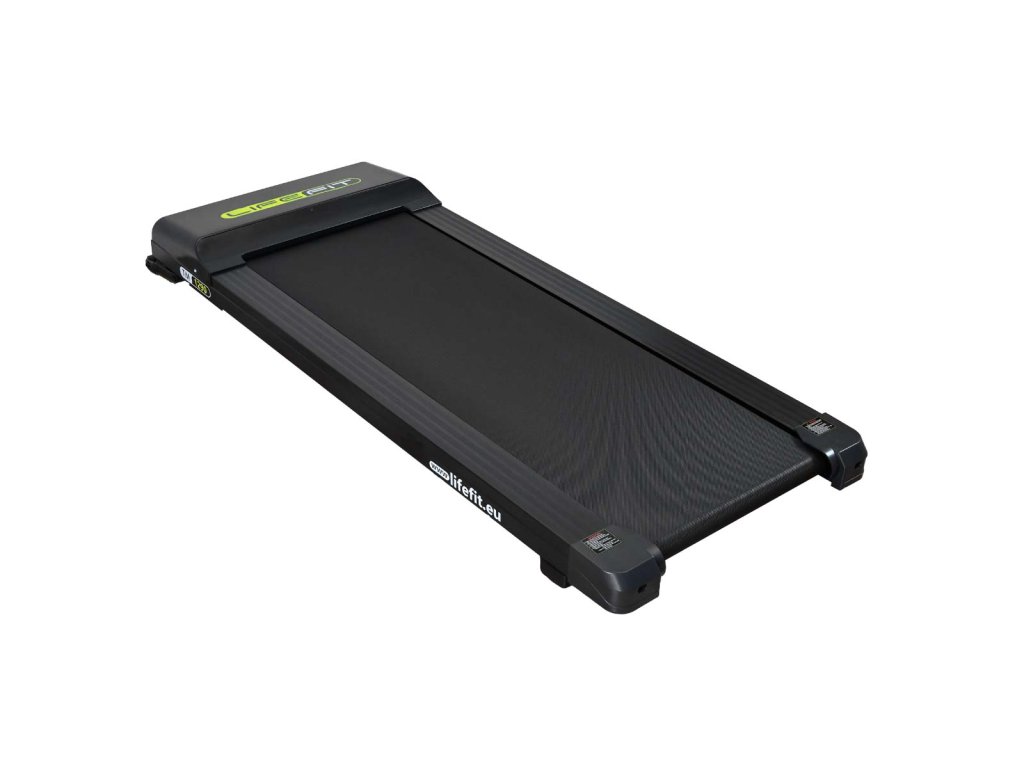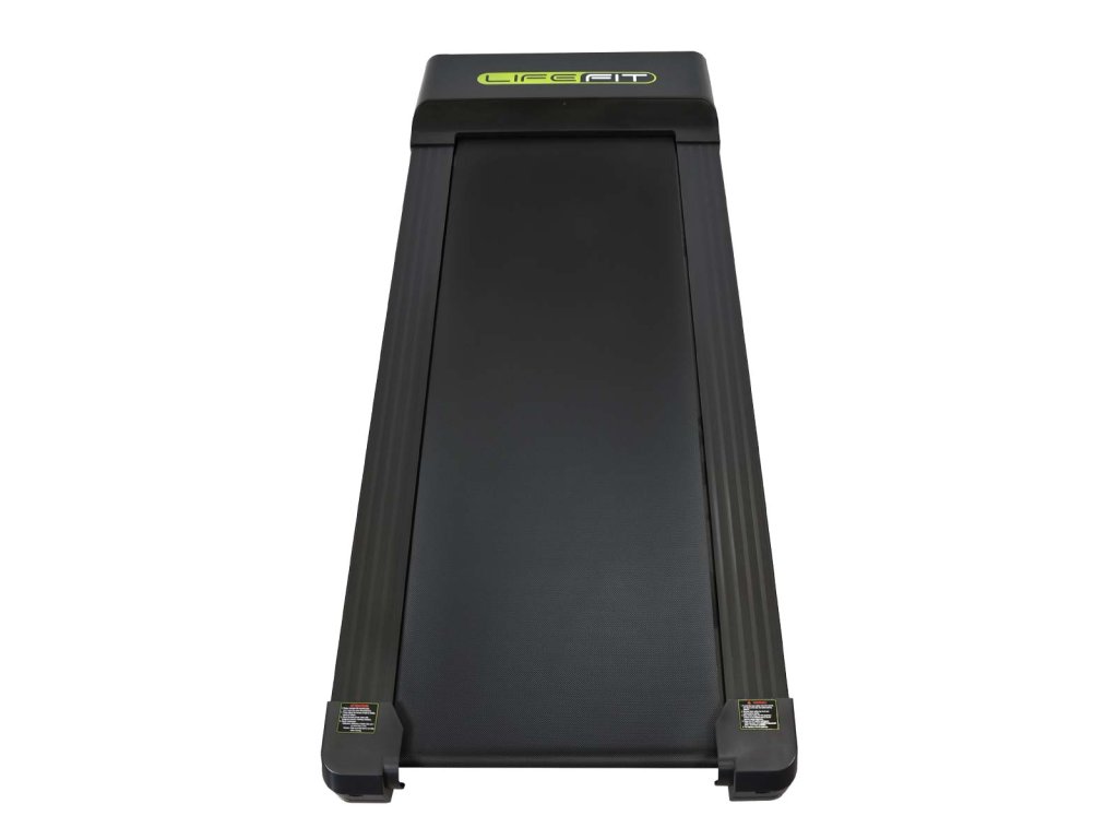 LIFEFIT TM1290 motorisiertes Geh-/Laufband – Motor mit einer maximalen Leistung von 1,2 PS (Kontinuität 0,6 PS) – Geschwindigkeit 1–6 km/h – Gürtel ohne vertikale Stützstruktur (Griffe) – keine manuelle Neigungsmöglichkeit – Gürtel mit Laufband mit einer Fläche von 115x41 cm - LCD-Display mit Zeit-, Distanz- und Geschwindigkeitsanzeige - Bandsteuerung per Fernbedienung oder über eine App - Bluetooth-Verbindungsmöglichkeit (SPAX-App) - Rollen ermöglichen eine einfache Handhabung - max. Tragkraft 90 kg - Maße: 147x60x15 cm - Gewicht des Gürtels: 26,2 kgZusätzliche Parameter