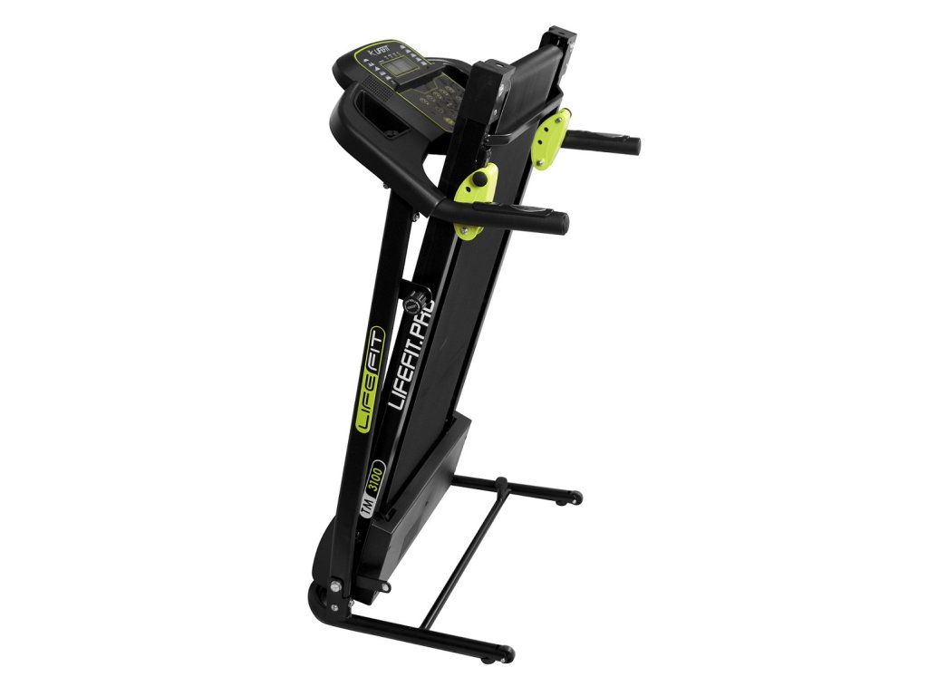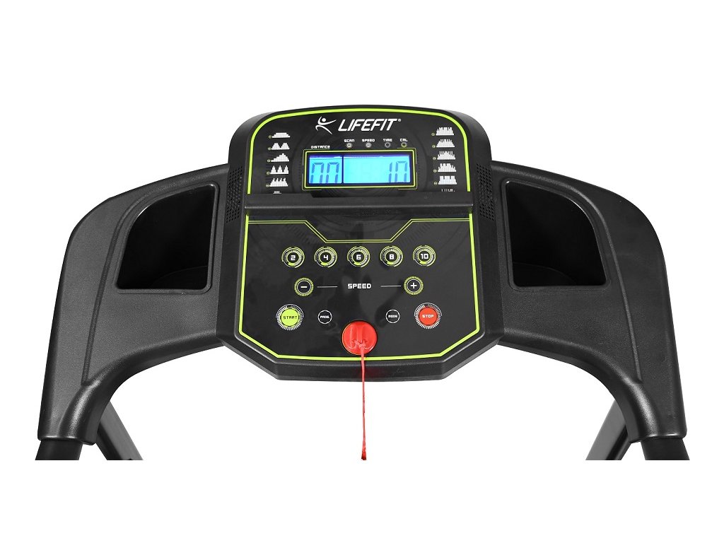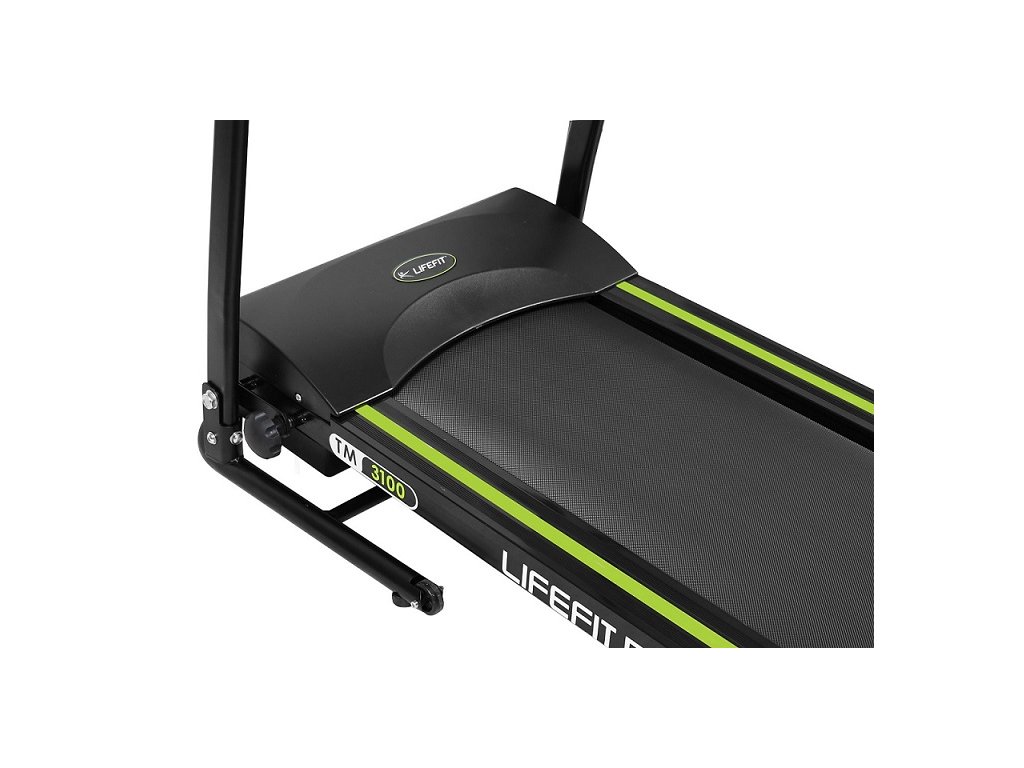 Motorisiertes Laufband LIFEFIT TM3100 - Motor mit einer Leistung von max. 2 PS (Kontinuität 1 PS) - Geschwindigkeit 1-12 km/h - 3 Stufen manuelle Neigung - Band mit einer Lauffläche von 97x34cm - LCD-Display mit Anzeige von Herzfrequenz, Zeit, Distanz, Geschwindigkeit, Kalorien - HRC-Programm, Bluetooth-Verbindung + Möglichkeit zum Anschließen eines Brustgurts - 12 voreingestellte Programme - Klappstruktur und Räder ermöglichen eine einfache Handhabung - Herzfrequenzsensor an den Griffen, Geschwindigkeitsregelung an den Griffen - 2x Getränkehalter, Lautsprecher, Tablethalter - Sicherheitsbremse - max. Tragkraft 100 kg - Maße: 125x63x121 cm - Maße zusammengeklappt: 60x63x121 cmZusätzliche Parameter