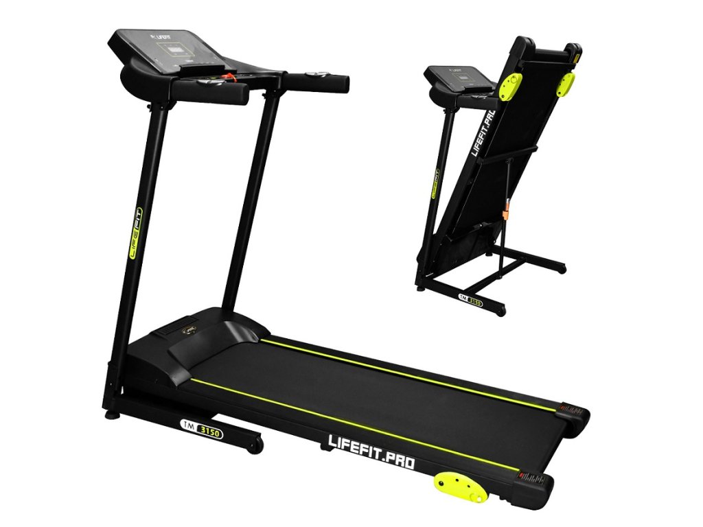 Motorisiertes Laufband LIFEFIT TM3150 – Motor mit einer maximalen Leistung von 2,5 PS (Kontinuität 1,25 PS) – Geschwindigkeit 1–12 km/h – 3 Stufen der manuellen Neigung – Band mit einer Lauffläche von 110 x 40,5 cm – LCD-Display mit Herzfrequenzanzeige, Zeit, Distanz, Geschwindigkeit, Kalorien – Bluetooth-Verbindung + Möglichkeit zum Anschließen eines Brustgurts – kompatible Anwendung für iOS – Aisport – 12 voreingestellte Programme – hydraulisch klappbare Struktur und Räder ermöglichen eine einfache Handhabung – Herzfrequenzsensor an den Griffen – 2x Getränkehalter, Lautsprecher , Tablet-Halterung - USB- und AUX-Anschlussmöglichkeit - Sicherheitsbremse - max. Belastbarkeit 100 kg - Maße: 138x68,5x108,5 cmZusätzliche Parameter