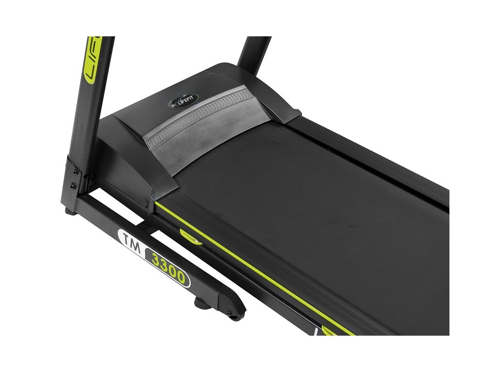 Motorisiertes Laufband LIFEFIT TM3300 – Motor mit einer maximalen Leistung von 3 PS (Kontinuität 1,5 PS) – Geschwindigkeit 0,8–17 km/h – 3 Stufen der manuellen Neigung – 6-Punkt-Aufhängungsgurt mit einer Lauffläche von 115 x 41,5 cm – 5 Zoll LCD-Display mit Anzeige von Herzfrequenz, Zeit, Distanz, Geschwindigkeit, Kalorien - BODYFAT-Programm, Bluetooth-Verbindung + Möglichkeit zum Anschließen eines Brustgurts - 12 voreingestellte Programme - Hydraulisch klappbare Konstruktion zum Zusammenklappen - Herzfrequenzsensor an den Griffen, Geschwindigkeitsregelung an den Griffen - 2x Halterung zum Trinken, Lautsprecher - USB-Anschlussmöglichkeit - Sicherheitsbremse - max. Belastbarkeit 120 kg - Maße: 152,5x68x127 cm - Maße zusammengeklappt: 85x68x130 cmZusätzliche Parameter