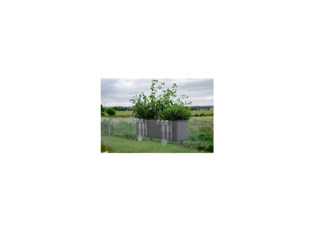Der Cobble-Blumentopfhalter wurde speziell für die Blumentöpfe Cobble und Cobble Trio entwickelt. Sie können den selbstbewässernden Übertopf mit der Halterung an der Wand (Schrauben nicht im Lieferumfang enthalten) oder am Balkongeländer befestigen. Polycarbonat, aus dem der Halter besteht, ist zehnmal haltbarer als gewöhnlicher Kunststoff und kann das gesamte Gewicht des Blumentopfs problemlos tragen. Darüber hinaus hält es einem breiten Temperaturbereich stand und ist daher sowohl für den Innen- als auch für den Außenbereich geeignet. Das transparente Design beeinträchtigt das Gesamtdesign des Blumentopfs nicht. Die Höhe des Halters beträgt 11 cm und die Breite 9 cm. Hinweis: Für den Pflanzkübel Cobble Trio benötigen Sie 2 Stück der Halterung zum Aufhängen, für den Pflanzkübel Cobble benötigen Sie 1 Stück.Zusätzliche Parameter