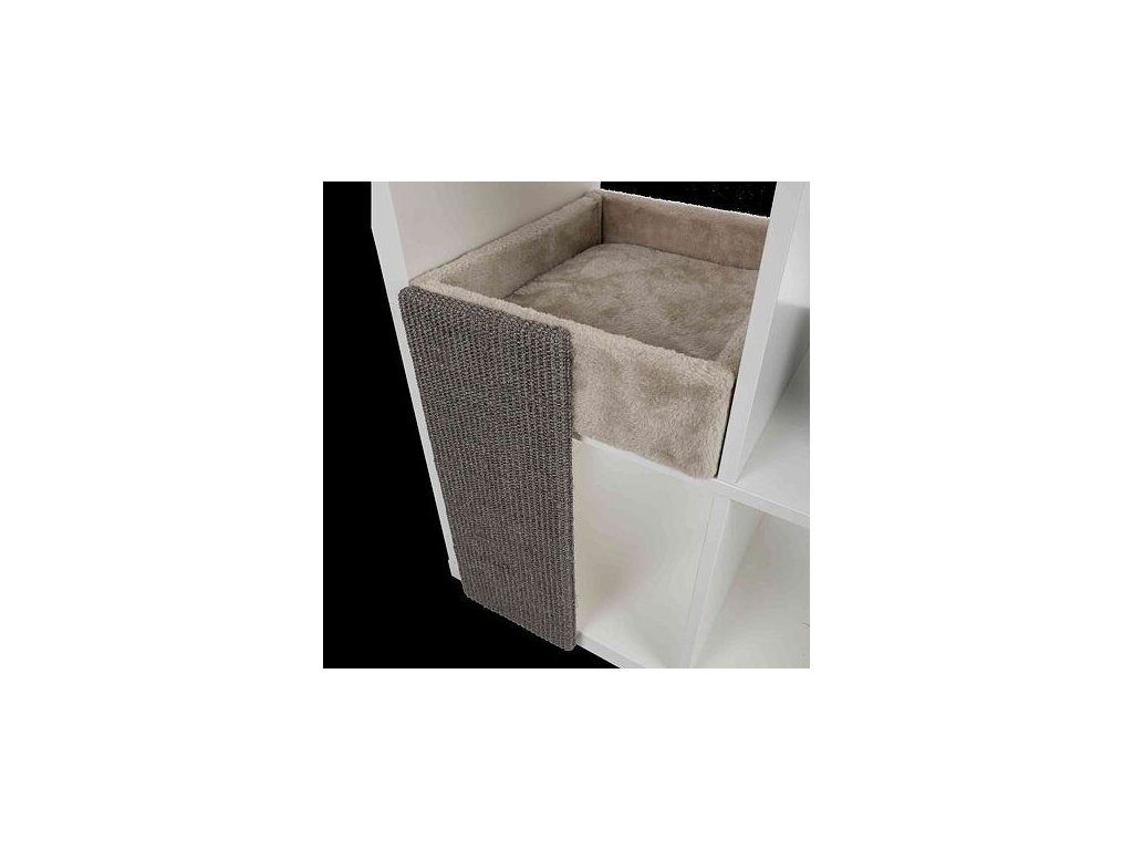 Quadratisches Bett mit Kratzbrett, dunkelgrau, in einem Regal platziert