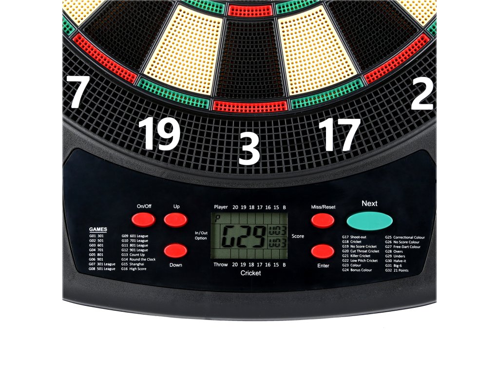 Sie haben Freunde eingeladen für ein Dartturnier? Unsere elektronische Zielscheibe unterstützt bis zu acht Spieler gleichzeitig, sodass sich jeder Teilnehmer voll und ganz auf das Spiel einlassen kann. Darüber hinaus bietet TDE03 bis zu 32 verschiedene Spielmodi, die Ihnen mit Sicherheit neue Herausforderungen und unvergesslichen Spaß bereiten. Natürlich die Spiele 301, 501, 901, Shanghai, High-Score, Cricket und viele andere. TDE03 bietet insgesamt 32 Spiele in mehreren Varianten.