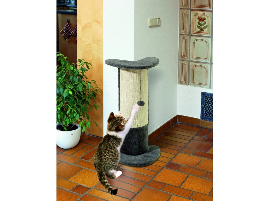 Dieser graue Eckkratzbaum mit Schnur bietet Ihrem Haustier die nötige Krallenpflege und schützt gleichzeitig Ihre Möbel vor Kratzern. Geeignet für Katzen jeden Alters.