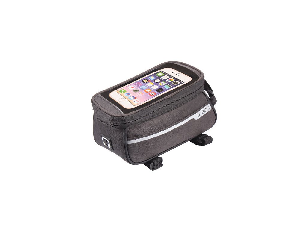 Dank der praktischen B-SOUL Front 1.0-Tasche haben Sie Ihr Smartphone und andere persönliche Gegenstände während Ihrer Radtouren immer griffbereit. Die leichte Polyestertasche am Vorderrahmen ist in erster Linie für ein Smartphone mit einer Diagonale von bis zu 190 mm (7,5 Zoll) mit einer oberen PU-Transparenz konzipiert, bietet aber gleichzeitig Platz für andere persönliche Gegenstände wie Geldbörse, Schlüssel usw. Die Gesamtabmessungen der Tasche betragen 210 x 90 x 105 mm. Neben dem Hauptfach bietet die Tasche auch zwei kleine unauffällige Seitentaschen mit schnellem Zugriff auf Kleinteile. Der Front 1.0 bietet auch einen Kopfhörerausgang. Drei Klettverschlüsse sorgen für eine einfache Befestigung der Tasche. Moderne B-SOUL-Fahrradausrüstung ermöglicht Ihnen komfortablere Radtouren.Zusätzliche Parameter