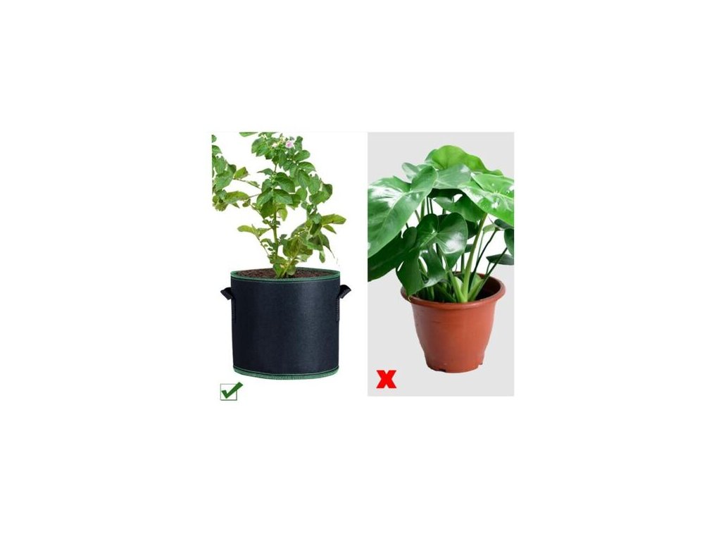 In den letzten Jahren sind im Gartenbereich sehr beliebte textile Blumentöpfe aufgetaucht, die eine gute Alternative zu klassischen Blumentöpfen darstellen. Grow Bag 11L ist ein textiler Blumentopf aus Polyester-Vliesstoff mit einem Gewicht von 260 g/m2, einer Höhe von 21 cm und einem Durchmesser von 25 cm. Zum leichteren Transport ist der Blumentopf an den Seiten mit zwei Griffen ausgestattet. Dieser Pflanzer kann bis zu 11,35 l (3 Gallonen) Erde aufnehmen. Dank des verwendeten Materials sorgt der Blumentopf für eine optimale Luftzirkulation und den Abfluss von überschüssigem Wasser. Vorteile von textilen Blumentöpfen: - ausgezeichnete thermoregulierende Eigenschaften - im Gegensatz zu Kunststoff-Blumentöpfen sind sie atmungsaktiver - verhindern die Ansammlung von überschüssigem Wasser - einfache Handhabung und leichterer Transport - unterstützen optimales Wurzelwachstum - für verschiedene Substratarten geeignet - geeignet für den Anbau von einjährigen Kräutern und mehrjährige Pflanzen, Sträucher und Setzlinge. Parameter: – Höhe: 21 cm – Durchmesser: 25 cm – Gewicht: 64 g – Fassungsvermögen: 11,35 l (3 Gallonen) – Material: Polyester-VliesstoffZusätzliche Parameter