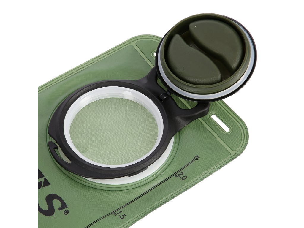 Hydrovak NC1720 besteht aus PEVA-Material, das ökologisch und umweltfreundlich ist. Die große Einfüllöffnung ist mit einem Deckel mit Dichtung versehen, so dass der Beutel nicht auslaufen kann. Die Kappe ist mit einem drehbaren Kunststoffformteil verbunden und verfügt auf der einen Seite über einen geformten Griff zum einfachen Tragen des gefüllten Hydrobags und auf der gegenüberliegenden Seite über einen Haken zum Aufhängen im Rucksack. Das Haupteinfüllloch ist groß genug, um mit einem Schwamm in den Beutel zu greifen, wenn Sie ihn reinigen müssen. Das 100 cm lange Rohr ist mit einem Silikonmundstück mit Verschluss versehen, das für maximale Sauberkeit bei der Anwendung sorgt. Das Silikonmundstück dient als Ventil und zum Trinken muss man darauf beißen, sonst fließt das Wasser nicht hindurch.
