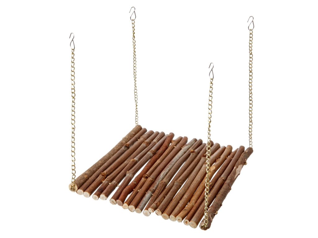Natürliche Holzschaukel für Nagetiere. Die Schaukel duftet nach Pfeffer und kann an normalen Nagetierkäfigen befestigt werden. Aus echtem Holz.