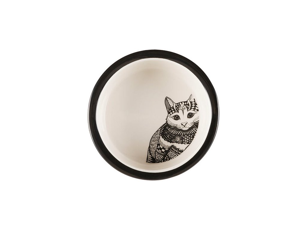 Keramiknapf Zentangle für Katzen 0,3l/12 cm weiß/schwarz