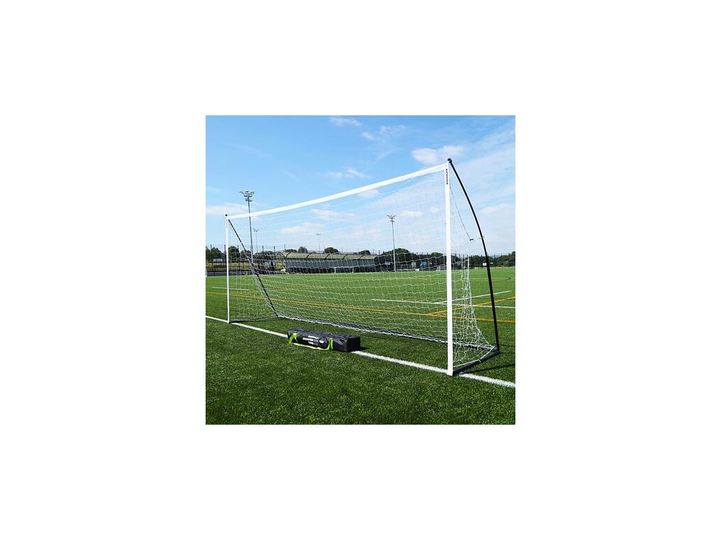Die Marke Quickplay präsentiert eine Reihe von Kickster ELITE-Trainingsfußballtoren. Im Vergleich zum klassischen Modell bietet dieses Tor eine stabile, belastbare Basis und eignet sich dadurch für harte Untergründe wie Kunstrasen, Beton oder für die Turnhalle. Dank seines Designs ist dieses Fußballtor leicht zusammenklappbar und kann mithilfe der mitgelieferten Tasche problemlos verstaut und zwischen den Trainingseinheiten transportiert werden. Es ist langlebig und tragbar und verfügt über das patentierte FLEXI POST-System mit einer Kombination aus Stahl und Glasfaser im Rahmen sowie einem flexiblen Querstangen- und Pfostensystem aus Stoff. Das Kickster ELITE-Tor eignet sich für das Einzeltraining und für Fußballvereine. Im Lieferumfang des Tores sind auch Heringe zur Befestigung im Boden enthalten. - Material: Stahl, Fiberglas. PE – Maße: 488 x 213 x 110 cm – Verpackungsgewicht: ca. 16,4 kg – Verpackungsmaße: 120 x 24 x 16 cm – einfache und schnelle MontageZusätzliche Parameter