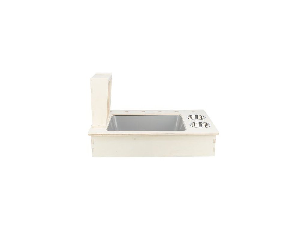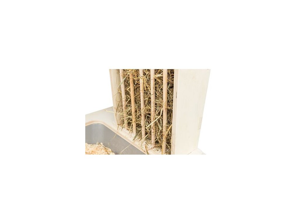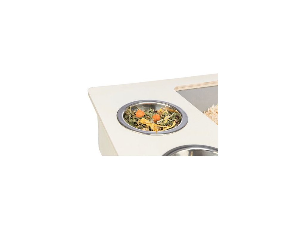 - Futterbar mit 2 Edelstahlnäpfen und Heukrippe