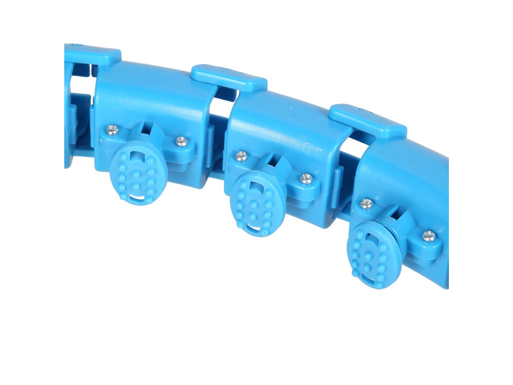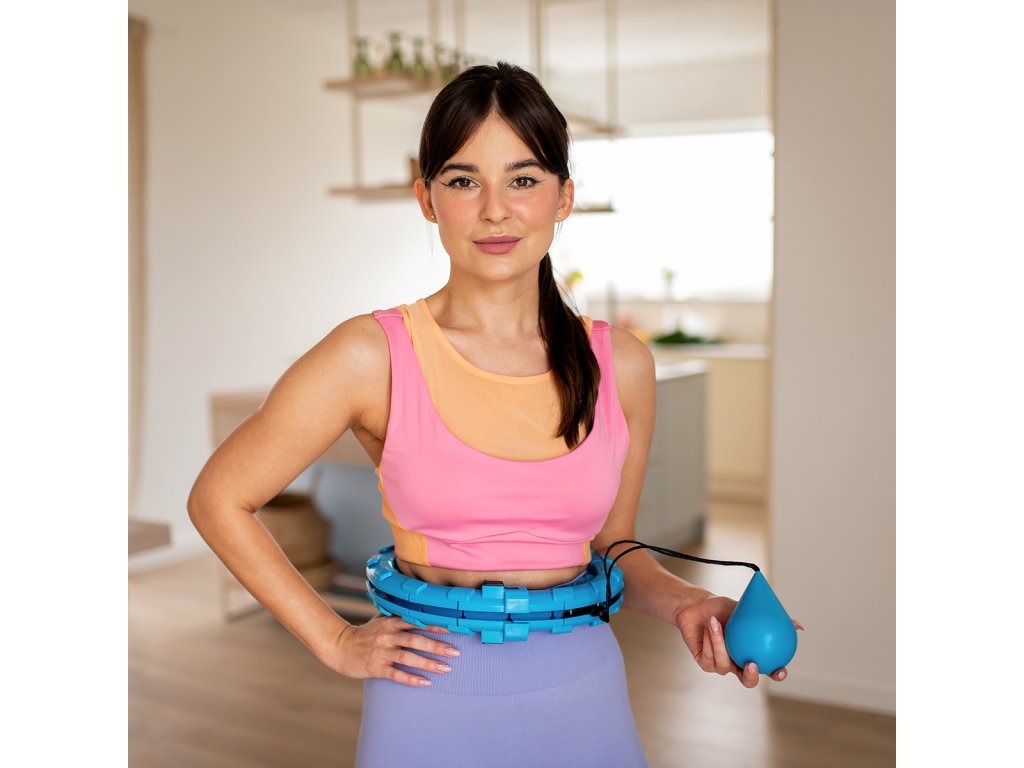 Die Länge des Reifens wird entsprechend dem Taillenumfang angepasst, sodass er locker genug sitzt, gleichzeitig aber nicht über die Hüften fällt. Nach dem Einstellen der Länge wird der Reifen mit dem Verbindungsteil verriegelt, das mit Hebeln zur Steuerung der Verriegelung ausgestattet ist. Die Gewichte „werfen“ dann in die Richtung, in die wir unsere Hüften drehen und mit dem Training beginnen. Der FH01-Hoop ist mit Massagekappen mit Federn auf der Innenseite ausgestattet, die Vibrationen des beweglichen Ankers dämpfen und gleichzeitig den Taillenbereich angenehm massieren. Die Intensität des Trainings wird durch die Geschwindigkeit beeinflusst, mit der wir unsere Hüften drehen.