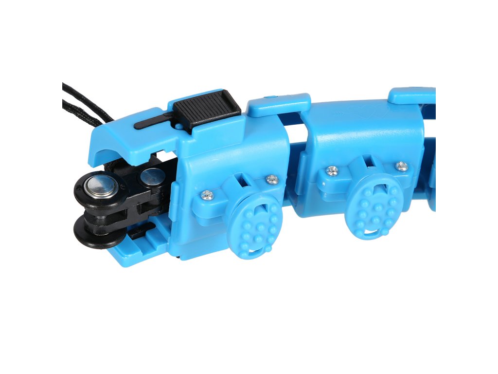 Die Funktion des FH01-Reifens ist sehr einfach. Die Konstruktion besteht aus 24 identischen Teilen, die zusammenpassen. Um den Reifen zu schließen, müssen Sie mindestens 14 Teile verwenden. Das Modell FH01 ist für einen Taillenumfang von 50 bis 104 Zentimetern geeignet. Hinter den Einzelteilen verbirgt sich eine Schiene, in die vor dem Verschließen der mit vier kugelgelagerten Rädern ausgestattete Anker eingeschoben wird. Am Anker ist ein Gewicht von 320 Gramm befestigt.