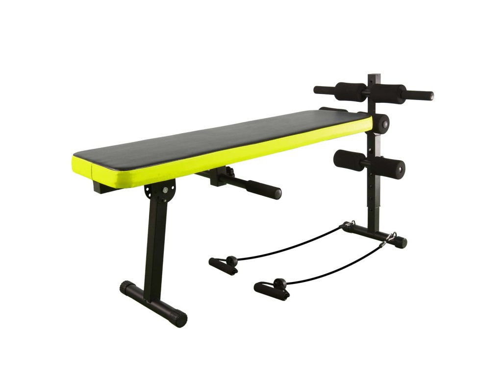 Die multifunktionale Hantelbank bietet min. 5-stufige Neigungsverstellung mit einfachem Nachstellsystem. Dank des zweiten Positionierungsbalkens kann die Bank in eine horizontale Position gebracht werden. Darüber hinaus ist die Bank mit einem Paar verstärkender Expander und Schaumstoffstützen unter der Sitzfläche für mehr Übungsvariabilität ausgestattet. Geeignet für Einsteiger und anspruchsvolle Heimsportler. - hochwertige Polsterung für komfortables Training - gerade Rückenstütze - kräftigende Expander - stabile Konstruktion mit Anti-Rutsch-Elementen - höhenverstellbare Schaumstoffauflage mit verlängerter Länge - vier Paar Schaumstoffauflagen zur Wahl der optimalen Position beim Training - für den Heimgebrauch konzipiert (Klasse H gemäß EN ISO-Norm 20957-1) – max. empfohlene Belastung: 110 kg – Maße der Bank (Rückenlehne): 103 x 30 cm – Gesamtmaße nach dem Aufklappen: 138 x 57 x 71 cm Gewicht: 9 kgZusätzliche Parameter