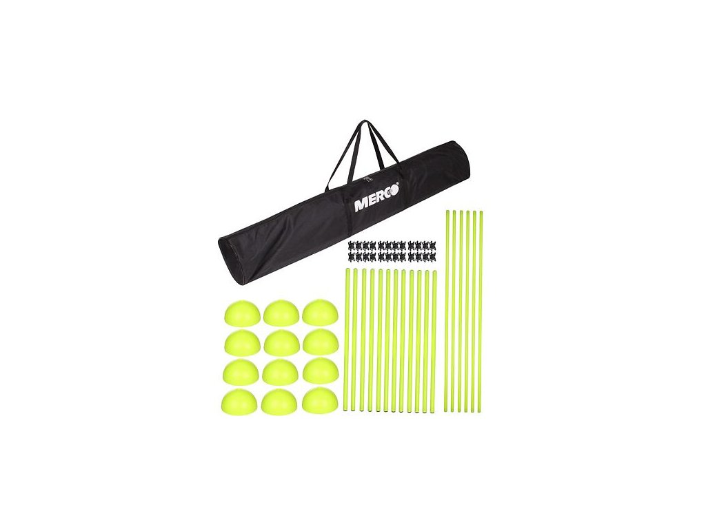 Das Set enthält insgesamt 6 vielseitig einsetzbare, höhenverstellbare Hindernisse Neon DS 11. Zum einfachen Transport und zur Aufbewahrung ist eine stabile Polyestertasche im Lieferumfang enthalten. Wenn er drinnen oder auf einer künstlichen Oberfläche einen Agility-Slalom- oder Hindernisparcours erstellen muss, ist das Neon DS 11-Set die ideale Wahl. Im Set enthalten sind 2 Kunststoffstäbe mit einem Durchmesser von 25 mm und einer Länge von 125 cm, ein Kunststoffstab mit einer Länge von 150 cm, zwei Kupplungen und zwei kuppelförmige Kunststoffständer, die mit Wasser oder Sand gefüllt werden können. Nach dem Einsetzen in die Regale entstehen Slalomstangen, an die Sie eine horizontale Stange mit Verbindungsstücken anschließen können, um ein höhenverstellbares Hindernis zu schaffen. Genießen Sie das Koordinationstraining mit dem Neon DS 11-Set, das in einer auffälligen neongelben Farbe geliefert wird. Packungsinhalt: - 12 x Stab (Länge: 125 cm, Durchmesser 25 mm, Gewicht 250 g) - 6 x Stab (Länge: 150 cm, Durchmesser 25 mm, Gewicht 300 g) - 12 x Ständer (Durchmesser 20 cm, Höhe 10 cm, Gewicht ohne Füllung 240 g) - 12 x Clutch - Reißverschlusstasche aus Polyester mit Griffen - Gesamtpaketmaße: Länge x Breite x Höhe: 155 x 23 x 22 cm - Gesamtpaketgewicht: 8,5 kg - Material: PVC-Kunststoff, PolyesterZusätzliche Parameter