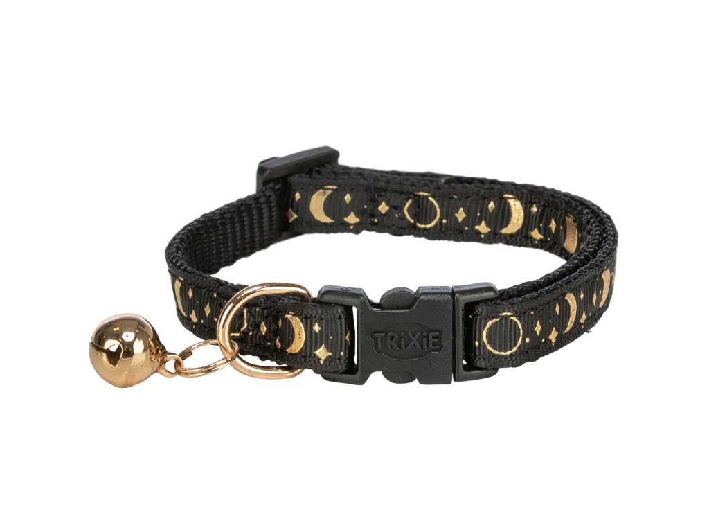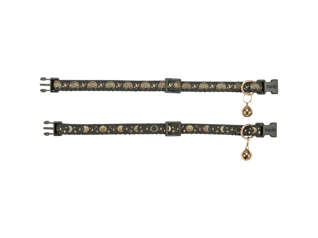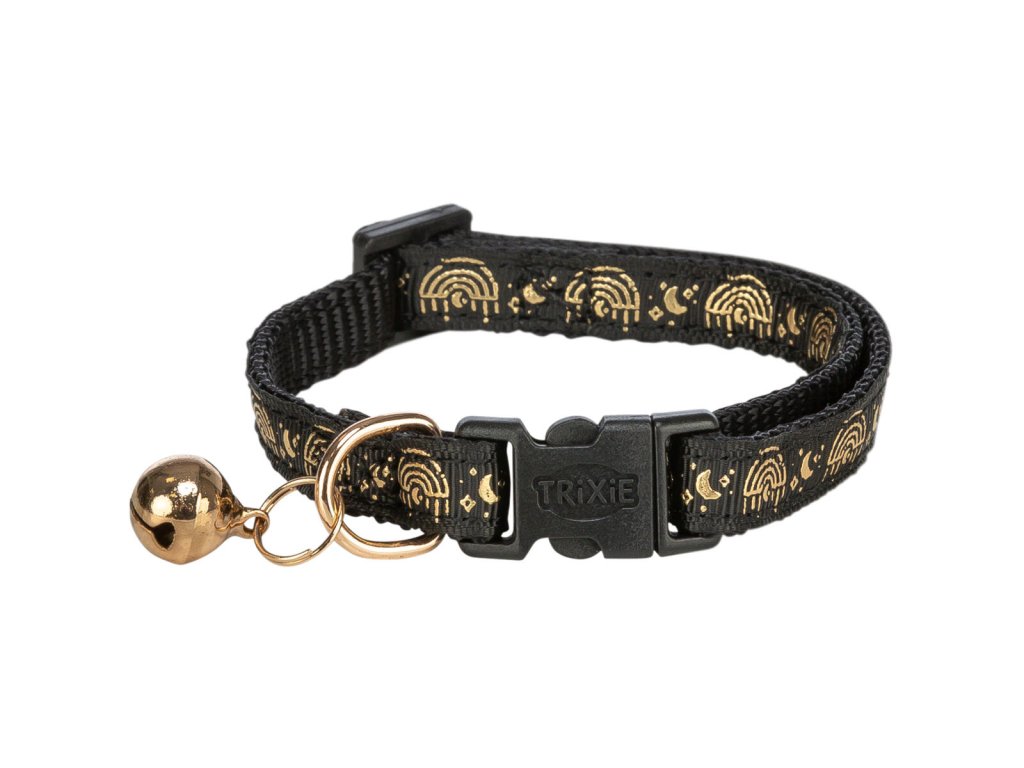 Obojek pro kočky, zlaté zdobení, s rolničkou, černá