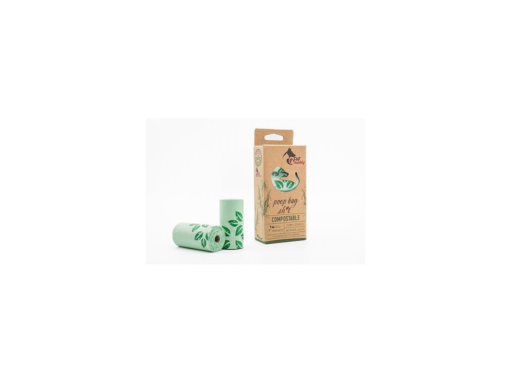 PetBuddy Kotbeutel, kompostierbar, 4 Rollen/ 15 Beutel, grün mit Aufdruck