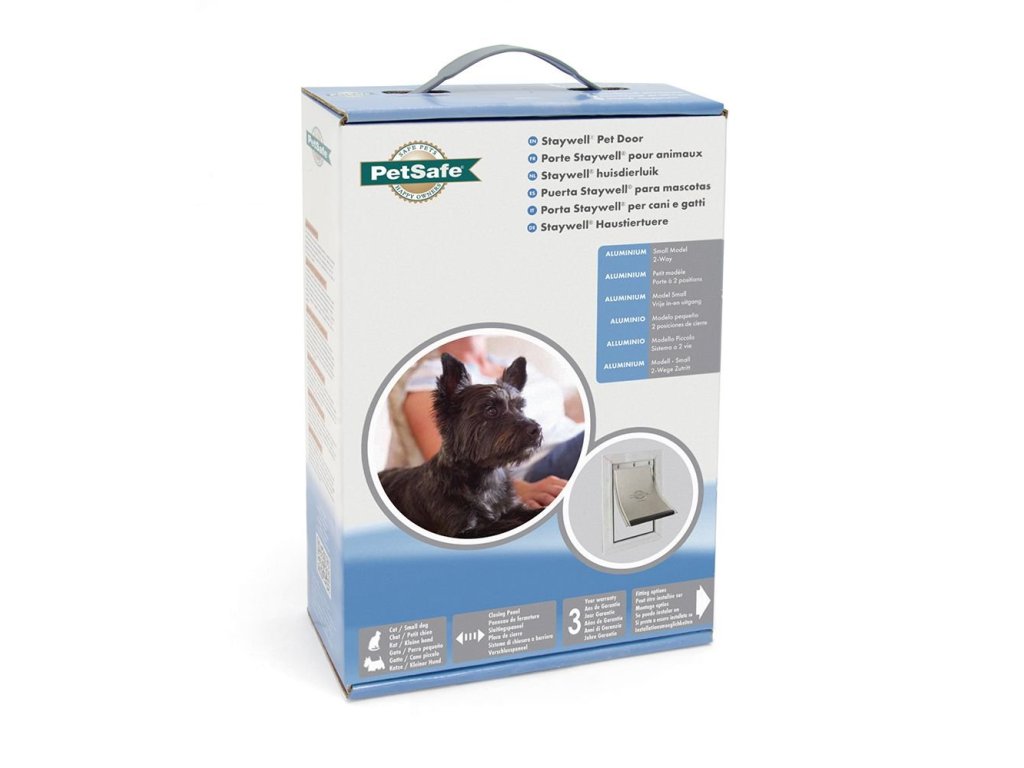 Abschließbare Haustiertür, wetterfest. Lochgröße 209 x 311 mm. Verpackt in einem braunen Karton.