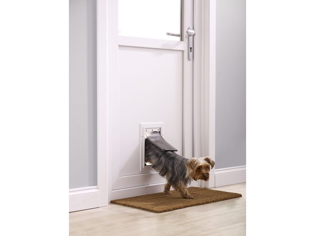 Tür mit manueller Verriegelung, geeignet für einen Hund oder eine Katze mit einem Gewicht von bis zu 8 kg.
