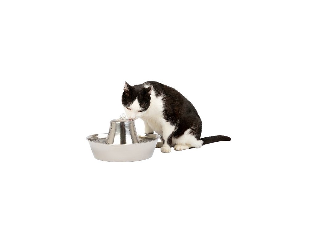 Helfen Sie Ihrem Haustier, glücklich, gesund und hydriert zu bleiben, mit dem PetSafe® Seaside-Brunnen aus Edelstahl. Der Brunnen versorgt Ihr Haustier mit frischem gefiltertem Wasser. Katzen und Hunde fühlen sich von fließendem Wasser angezogen, was sie dazu anregt, häufiger zu trinken und so ihre allgemeine Gesundheit fördert. Dieser Haustierbrunnen fasst 1,8 Liter Wasser und hat somit die perfekte Größe für eine Katze oder einen kleinen Hund. Der geräuscharme Betrieb des Brunnens sorgt dafür, dass das Wasser nur sanft über den Turm sprudelt (im Gegensatz zu einem frei fallenden Bach), sodass sich auch scheue oder ängstliche Katzen wohl fühlen und schnell mit dem Wasser vertraut werden können. Ihr Haustier kann auch Wasser aus einem Turm oder einer Schüssel trinken. Der Brunnen verwendet eine Pumpe, einen Kohle- und einen Schaumstofffilter, die zusammenarbeiten, um Tierhaare, Speichel und Gerüche aus dem Wasser zu entfernen. So bleibt das Trinkwasser immer sauber. Der Edelstahlbrunnen besteht aus hochwertigen Materialien, die hygienisch sowie kratz- und rostbeständig sind. Wenn es an der Zeit ist, den Brunnen zu reinigen, stellen Sie den Edelstahlturm und die Schüssel in den oberen Korb Ihrer Spülmaschine. Reinigen Sie die Pumpe von Hand.