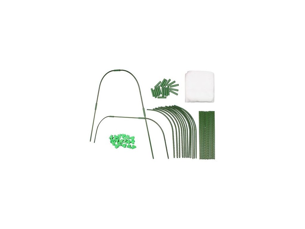 Dank des Merco Plant Hoop-Sets können Sie in Ihrem Garten einfach und schnell eine Tunnelstruktur mit einem Polyethylen-Schutznetz aufbauen, das die auf den Beeten wachsenden Pflanzen wirksam vor schädlichen Insekten und Vögeln schützt. Mit Hilfe von geraden und gebogenen Stäben aus kunststoffbeschichtetem Stahl und Kunststoffverbindern montieren Sie die Bögen (Sie können bis zu 4 Varianten von Bögen mit unterschiedlichen Abmessungen wählen), die Sie über den Blumenbeeten in den Boden stecken, aufsetzen Das Schutznetz auslegen, mit Kunststoffklammern befestigen und schon ist die komplette Schutzkonstruktion fertig. Ihre Pflanzen und Nutzpflanzen wachsen besser und schneller, ohne dass Pestizide erforderlich sind. Maßvarianten der Bögen: 1. Höhe 38 cm, Breite 57 cm – aus 2 gebogenen Stäben und 1 Verbinder können bis zu 6 Bögen zusammengesetzt werden. 2.Höhe 38 cm, Breite 96 cm – es ist möglich, bis zu 6 Bögen aus 2 gebogenen Stäben, 1 geraden Stab und 2 Verbindern zusammenzubauen. 3. Höhe 75 cm, Breite 57 cm – es ist möglich, bis zu 6 Bögen aus 2 gebogenen Stäben, 2 geraden Stäben und 3 Verbindern zusammenzubauen. 4. Höhe 75 cm, Breite 96 cm – es ist möglich, bis zu 4 Bögen aus 2 gebogenen Stäben, 3 geraden Stäben und 4 Verbindern zusammenzubauen. Packungsinhalt: -12 Stück gerade Stäbe, Länge: 40 cm, Durchmesser 1 cm, Material: kunststoffbeschichteter Stahl -12 Stück gebogene Stäbe, Länge 48 cm, Durchmesser 1 cm, Material: kunststoffbeschichteter Stahl -18 Kunststoffverbinder , Länge: 7,5 cm, Durchmesser 1,5 cm -18 Kunststoffklammern 4 x 3 cm -Schutznetz: Größe 2,5 x 7,5 m, Material: Polyethylen, leicht und wasserdicht -Verpackungsgröße: 43 x 30 x 10 cm, Verpackungsgewicht: 1,8 kgZusätzliche Parameter