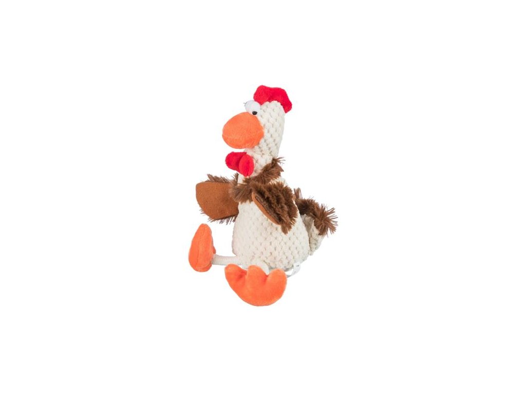 Plüschhahn sitzend, mit Ton 22 cm