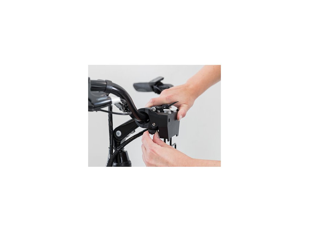 - Die Halterung verfügt über zwei Griffe am Lenker (links und rechts