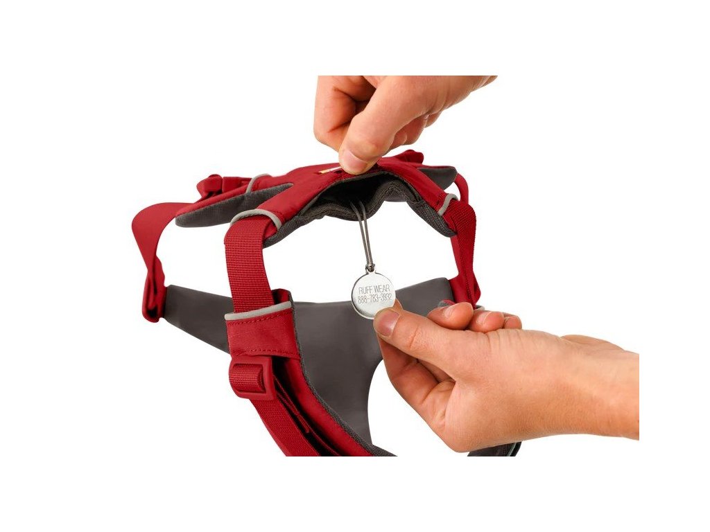 Das Geschirr ist außerdem mit einer leicht zugänglichen Tasche zum geräuschlosen Tragen von Erkennungsmarken ausgestattet und bietet reflektierende Eigenschaften Einfassung und eine Schlaufe für mehr Sicherheit bei der Befestigung von Sicherheitslichtern bei schlechten Lichtverhältnissen.
