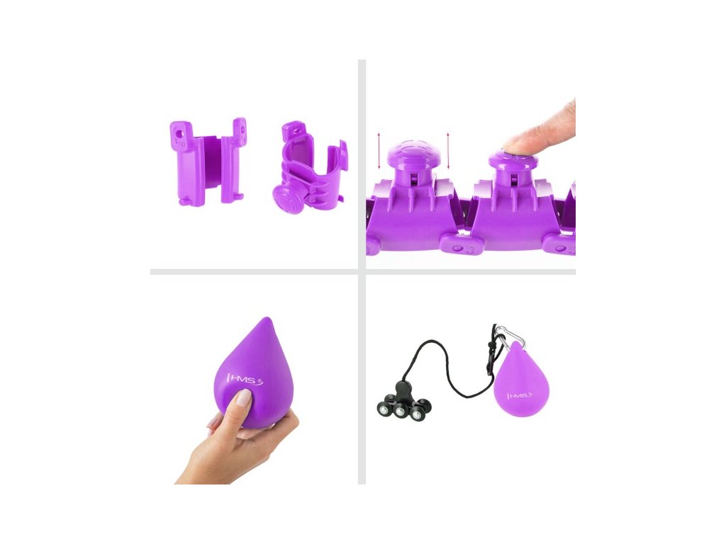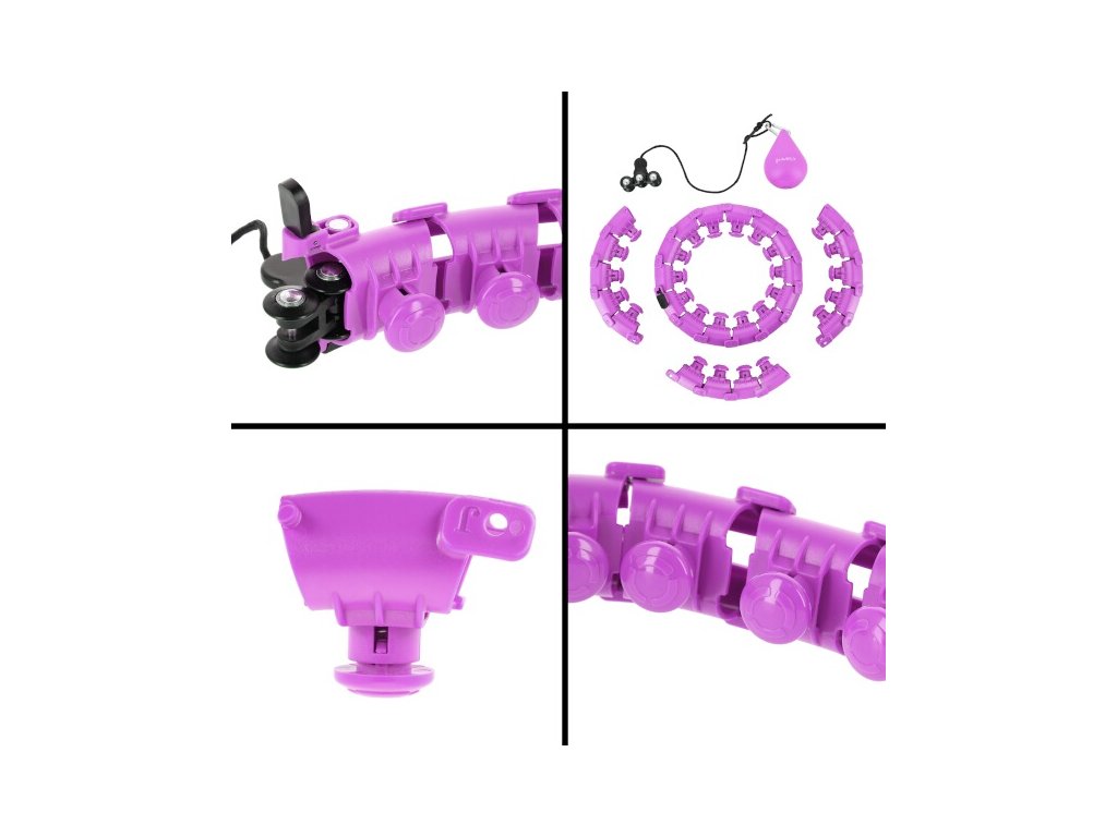 Die Länge des Reifens wird entsprechend dem Taillenumfang angepasst, damit er locker genug ist, aber gleichzeitig es fällt nicht über die Hüften. Nach dem Einstellen der Länge wird der Reifen mit dem Verbindungsteil verriegelt, das mit Hebeln zur Steuerung der Verriegelung ausgestattet ist. Das Gewicht wird dann in die Richtung „geworfen“, in die wir unsere Hüfte drehen und mit dem Training beginnen – mit der Reifenbewegung versuchen wir, das Gewicht in der Luft zu halten. Der HHW12-Hoop ist mit Massagekappen mit Federn auf der Innenseite ausgestattet, die Vibrationen des beweglichen Ankers dämpfen und gleichzeitig den Taillenbereich angenehm massieren. Die Intensität des Trainings wird durch die Länge der Saite und die Geschwindigkeit, mit der wir unsere Hüften drehen, beeinflusst.