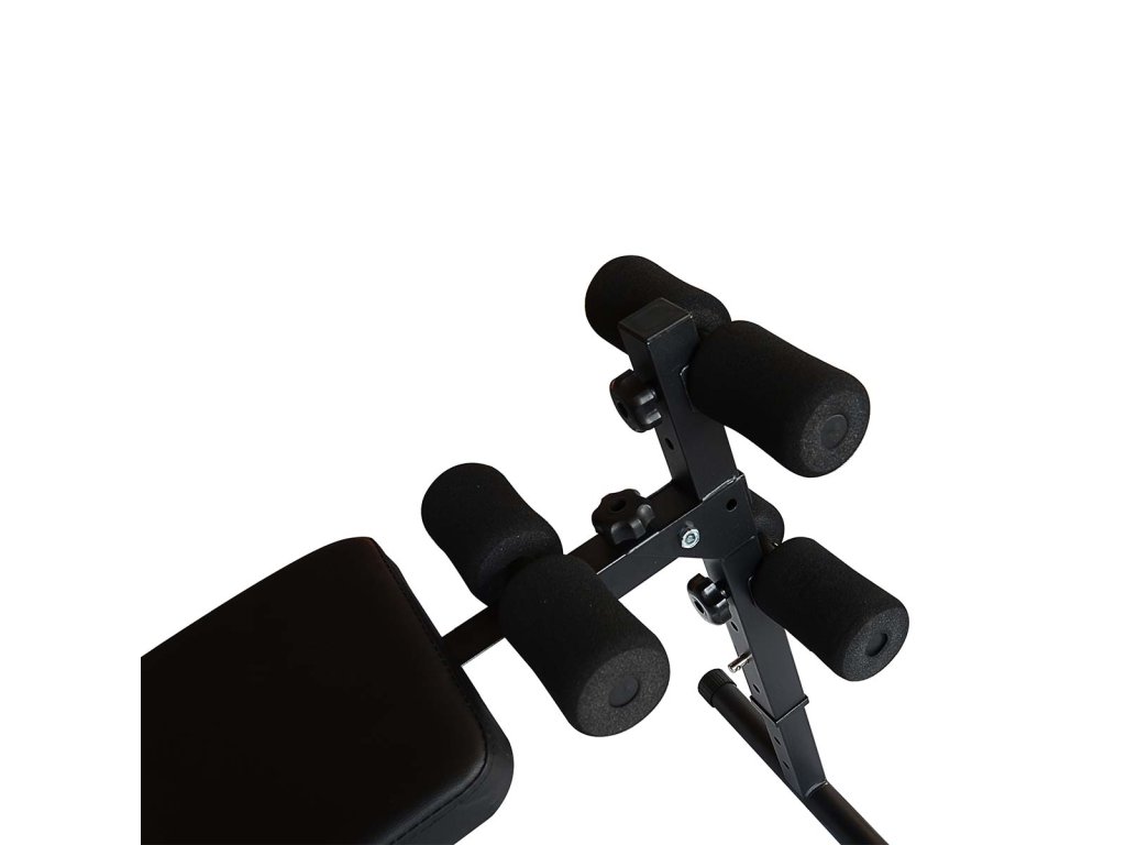 Die klassische Schrägbank zur Kräftigung der Bauchmuskulatur bietet eine 4-stufige Neigungsverstellung mit einfachem Nachstellsystem. Geeignet für Einsteiger und anspruchsvolle Heimsportler. - hochwertige Polsterung für komfortables Training - gerade Rückenlehne - stabile Konstruktion mit Anti-Rutsch-Elementen - höhenverstellbare Schaumstoff-Rückenlehne - für den Heimgebrauch konzipiert (Klasse H nach EN ISO 20957-1) - max. Belastung: 150 kg Bankgröße (Rückenlehne): 104 x 30 cm – Gesamtmaße nach dem Aufklappen: 140 x 40 x 72 cm. Gewicht: 6,7 kgZusätzliche Parameter