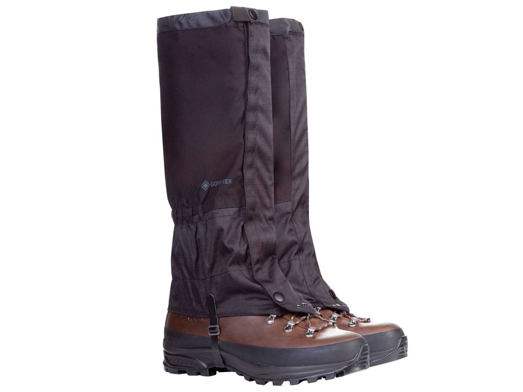 Hüllen mit Membran aus dreilagigem GORE-TEX. Vorne mit Reißverschluss zu öffnen, der von einem Trockenreißverschluss verdeckt wird. Der untere Teil ist mit Polyester Ripstop verstärkt. Enger Riemen unter dem Schuh. Straffung über und um den Knöchel herum. Metall-Druckknöpfe und Spitzenhaken. Die Abdeckungen bieten hochwertigen Schutz vor Regen, Schnee, Steinen, Staub und Schmutz. Unterhalb des Reißverschlusses befindet sich ein Haken zur Befestigung an Schnürsenkeln. Der Riemen unter dem Schuh besteht aus einem Material, das eine hohe Durchdringungsfestigkeit aufweist und gleichzeitig auch bei extremer Kälte flexibel bleibt. Der Zug oben wird durch elastische Kordeln unterstützt.