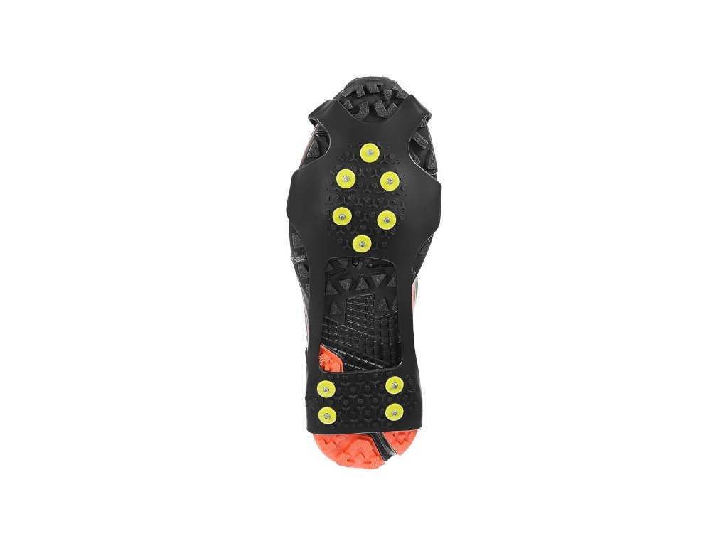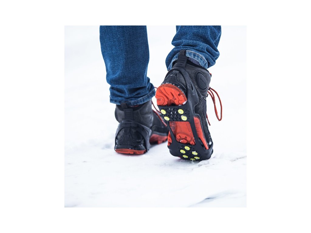 Das Modell NC1702 verfügt über 10 Edelstahlspikes an der Unterseite. Die Spitzen sitzen in einer Presse, die ein Herausfallen verhindert. Der obere Teil der Ärmel besteht hingegen aus robustem und flexiblem Gummi, wodurch der Benutzer sie leicht an seine Schuhe anpassen kann.
