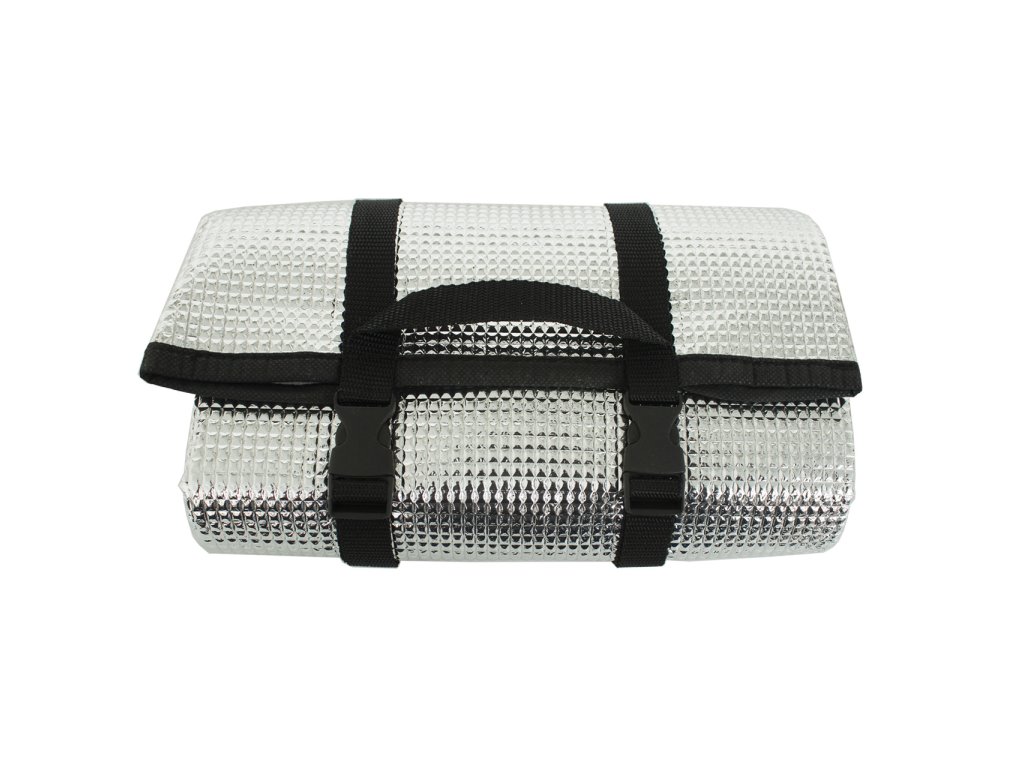 Eine Matte ausgestattet mit reflektierender ALU (Aluminium) -Folie, die die abgestrahlte Wärme zurückreflektiert (Folie nach oben legen). Sie sind kompakt und sehr leicht. Ideal zum Wandern und Radfahren im Sommer. Schützt vor Kälte, Feuchtigkeit und Schmutz. Die Matte verfügt über eingenähte Riemen, sodass sie in ein kleines Paket gepackt und wie eine Tasche getragen werden kann. Die Gurte sind nicht zum Aufhängen der Matte am Rucksack geeignet, sie können abreißen.