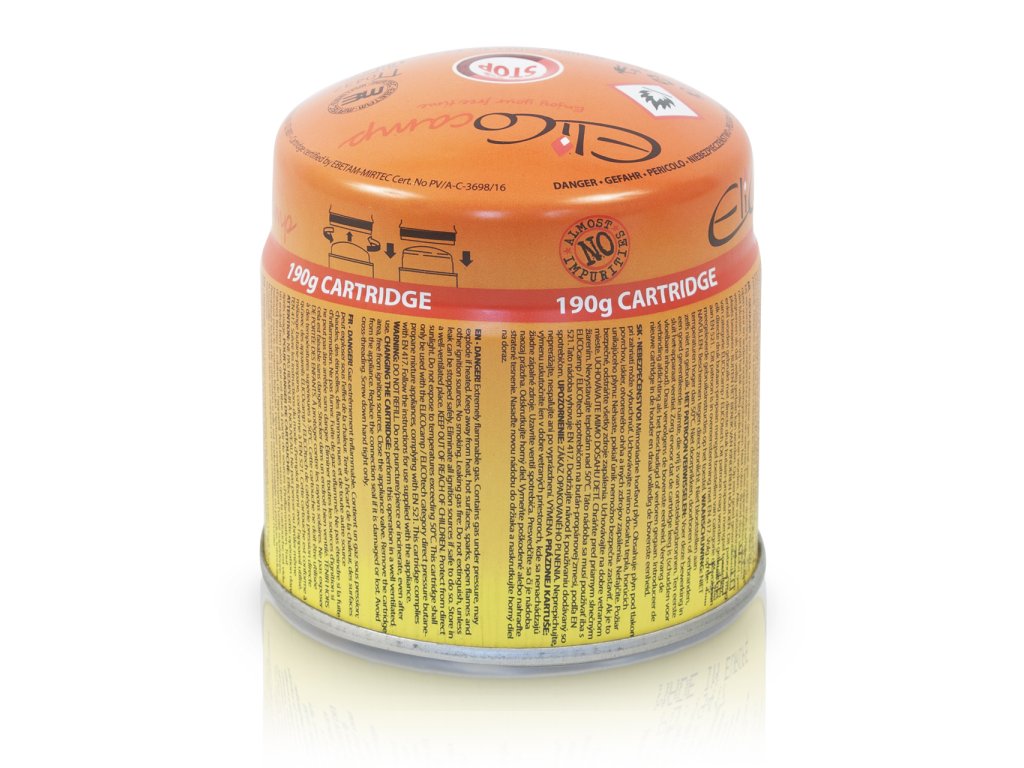 Einweg-Propan-/Butankartusche, passend für STING K190-Herde und für alle anderen Geräte mit Stechkartuschen Typ 200. Die Kartusche verfügt über ein STOP-GAS-Sicherheitssystem, das ein Austreten von Gas verhindert. Füllgewicht 190 g.