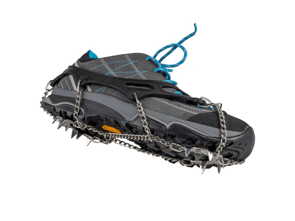 Geeignet für Sport- und Freizeitschuhe. Nicht zum Bergsteigen gedacht. Lieferung im praktischen Etui mit Reißverschluss. Dieses Modell eignet sich für leichtes Gelände (asphaltierte Straßen, gefrorener Schnee).