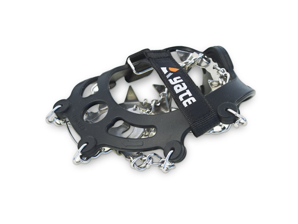 YATE ICE SPIKES Kettenspikes mit langen Stahlspikes erleichtern das Gehen und Laufen im Schnee, auf Eis und in schwierigem Gelände mit Rutschgefahr. Nesmeks sorgen für Stabilität und Sicherheit in rutschgefährdetem Gelände. Sie ersetzen Steigeisen nicht, erfüllen aber eine ähnliche Funktion. Die Länge der Spikes beträgt 17 und 14 mm, wodurch die Schneeschuhe ein bequemes Gehen auch in tieferem Schnee ermöglichen, ohne dass die Gefahr besteht, dass die Spikes durch Schnee verstopft werden.
